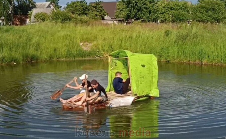 Ковельський ліцеїст Артем Федонюк змайстрував з пляшок пліт.