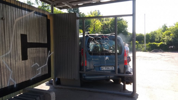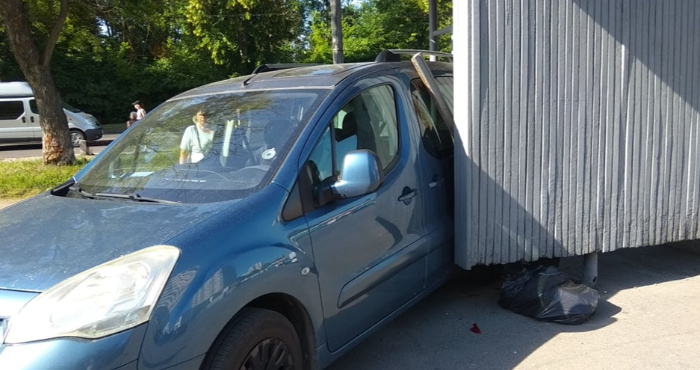 У Луцьку автомобіль в'їхав у зупинку. Очевидно, машина скотилася, бо не поставили на «ручник».
