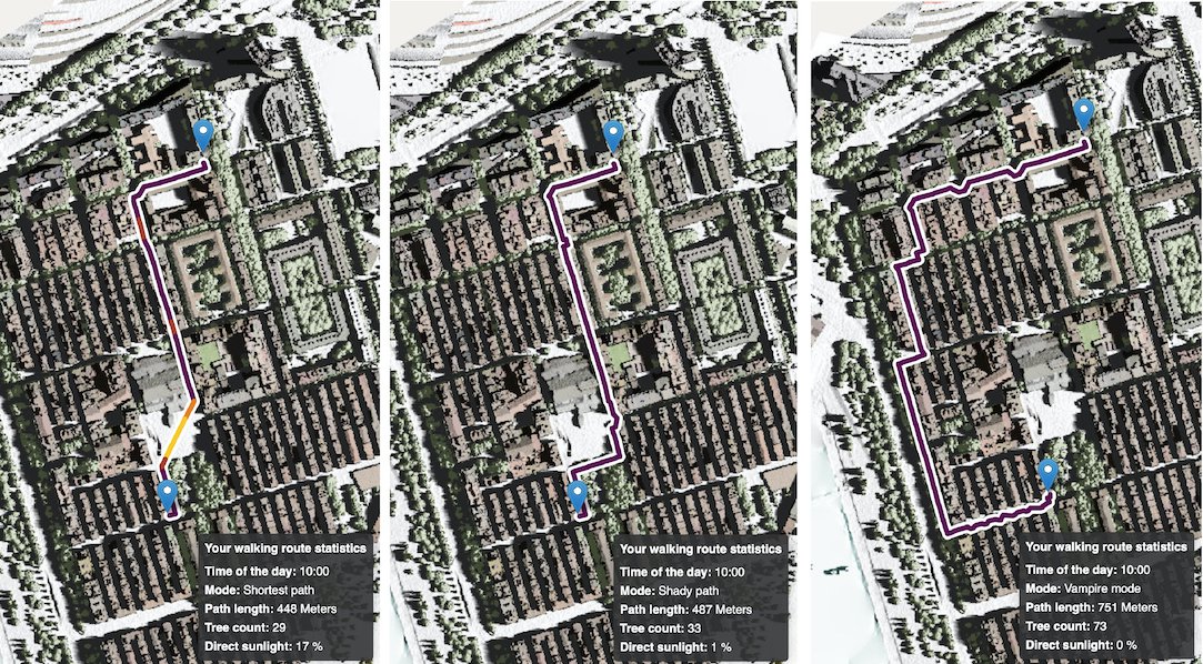 Мапа працює в трьох режимах: найкоротший між двома точками; дещо довший прохолодний; і «режим вампіра», який передбачає повне уникання прямих сонячних променів. Також легко віднайти розташування фонтанчиків із питною водою та прихистків від спеки, наприклад, бібліотек, шкіл або ринків.
