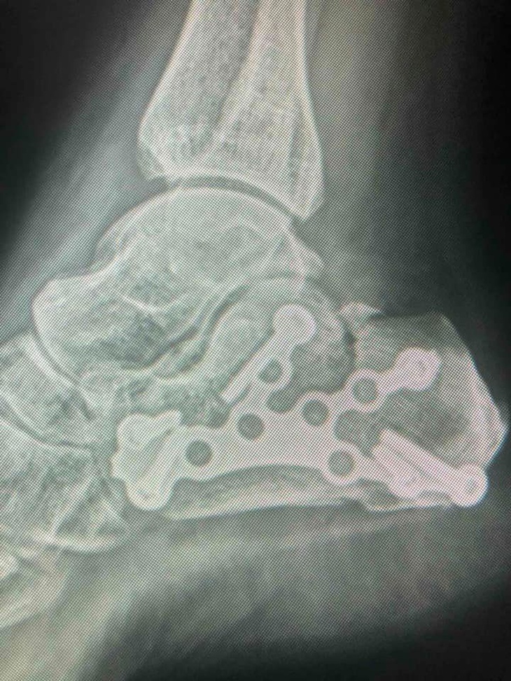 Під СМА (спинно-мозкова анестезія) провели остеосинтез п‘яткової кістки. Операція пройшла успішно. У пацієнтки були відновлені активні рухи в суглобах стопи.