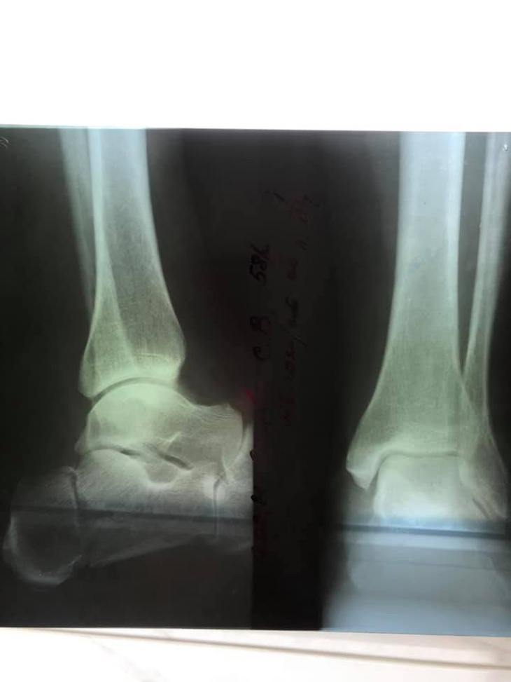 Після проведеного обстеження пацієнтки встановили діагноз: відламковий перелом п‘яткової кістки зі зміщенням.