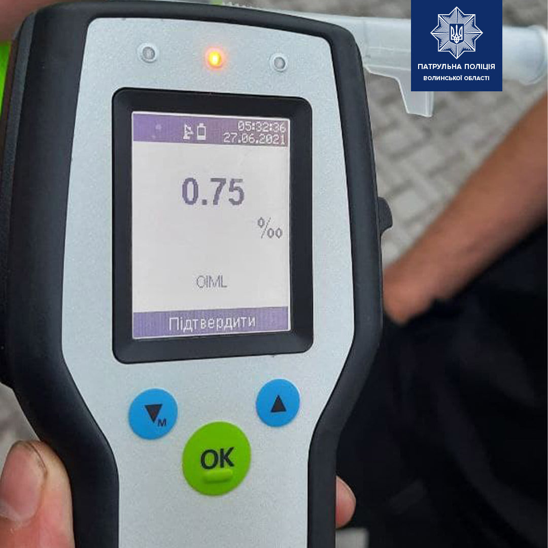 Огляд на стан сп’яніння на місці події показав результат у 0,75 проміле, що майже в 4 рази перевищує допустиму норму. Однак керманич не погодився із результатом і виявив бажання пройти огляд у медичному закладі.