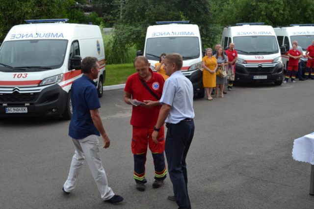 Сьогодні п'ять автомобілів поїде на Ковельщину, по одному у Володимир-Волинський та Камінь-Каширський райони, аби надавати якісну медичну допомогу мешканцям сільської місцевості, а також забезпечувати комфортне транспортування пацієнтів із віддалених населених пунктів до спеціалізованих медичних закладів, – зауважив він. – Бажаю усім працівникам центру екстреної медичної допомоги та медицини катастроф міцного здоров'я, благополуччя та достатку. Нехай ці автомобілі стануть вашими помічниками в наданні першої медичної допомоги і ніколи вас не підводять. Зеленого вам світла на усіх дорогах та вчасних доїздів на місце виклику.