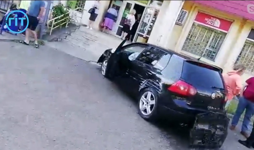 У Луцьку на проспекті Соборності автомобіль з'їхав із дороги і мало не в'їхав в магазин, який розташований на першому поверсі багатоповерхівки.