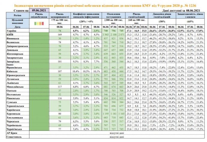 Станом на понеділок, 7 червня, вся Україна перебувала у «жовтій» зоні карантинних обмежень. У середу, 9 червня, вся територія України перейшла у «зелену» зону.
