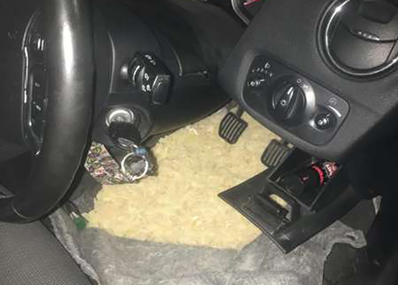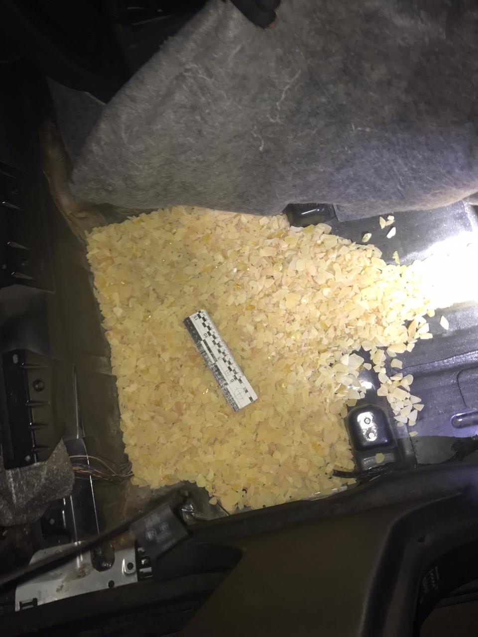 Проте скоїти подібний замисел чоловіку не вдалося. Під час поглибленого огляду автомобіля працівники Державної прикордонної служби України виявили заховане під ковроліном підлоги водійського та пасажирського сидінь «сонячне каміння», законність походження якого не підтверджувалася жодними документами.