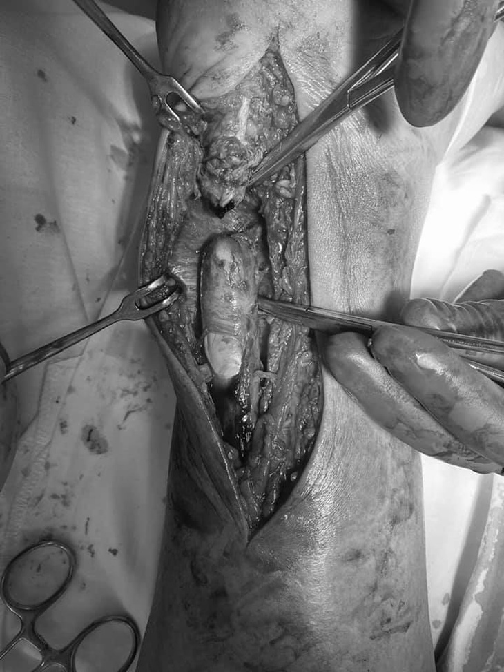 Це сухожилля прикріплюється до бугора п’яткової кістки та досить просто прощупується через підшкірно-жирову клітковину,