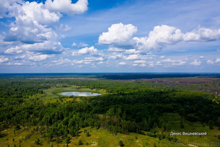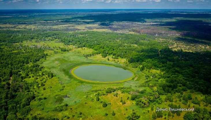 У Чорнобильській зоні відчуження на території заповідника знайшли озеро майже ідеальної форми. Раніше ця водойма була ставком біля поліського села.
