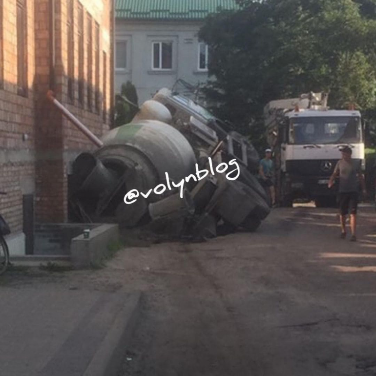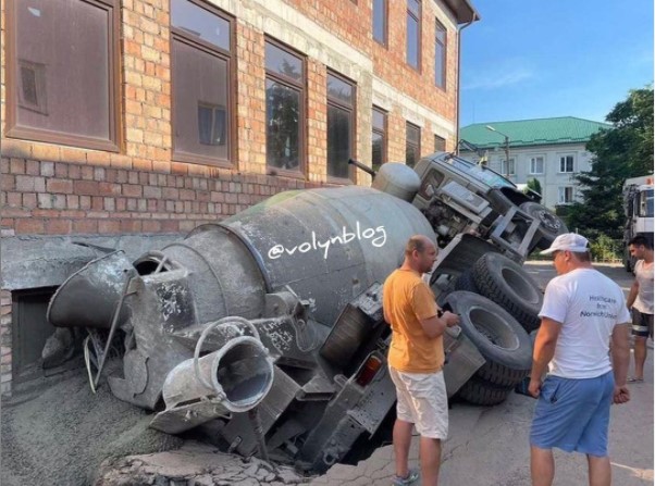 У місті Камені-Каширському кількатонний автомобіль-міксер провалився в яму.