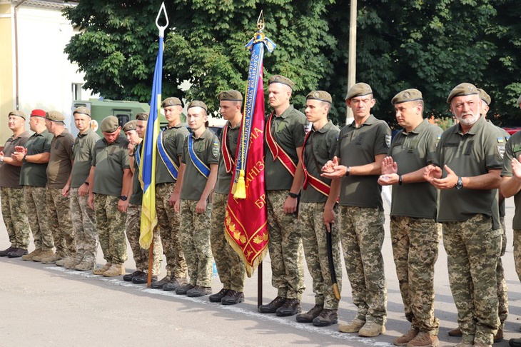 Також слова подяки бійцям виголосили очільники Волинської ОДА Юрій Погуляйко, обласної ради Григорій Недопад, голови Володимир-Волинської РДА Юрій Лобач та районної ради Віктор Хиць, депутат обласної ради та помічник нардепа Андрій Бокоч, єпископ Володимир-Волинський і Турійський Матфей та командир 14-ї ОМБр полковник Сергій Войченко.