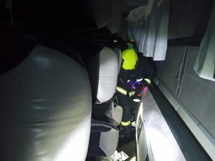 Рятувальники вивели з автобуса 10 пасажирів та за допомогою спецінструмента деблокували 1 людину, що була затиснута між сидіннями. До надання допомоги було залучено 4 одиниці спецтехніки ДСНС та 20 рятувальників.