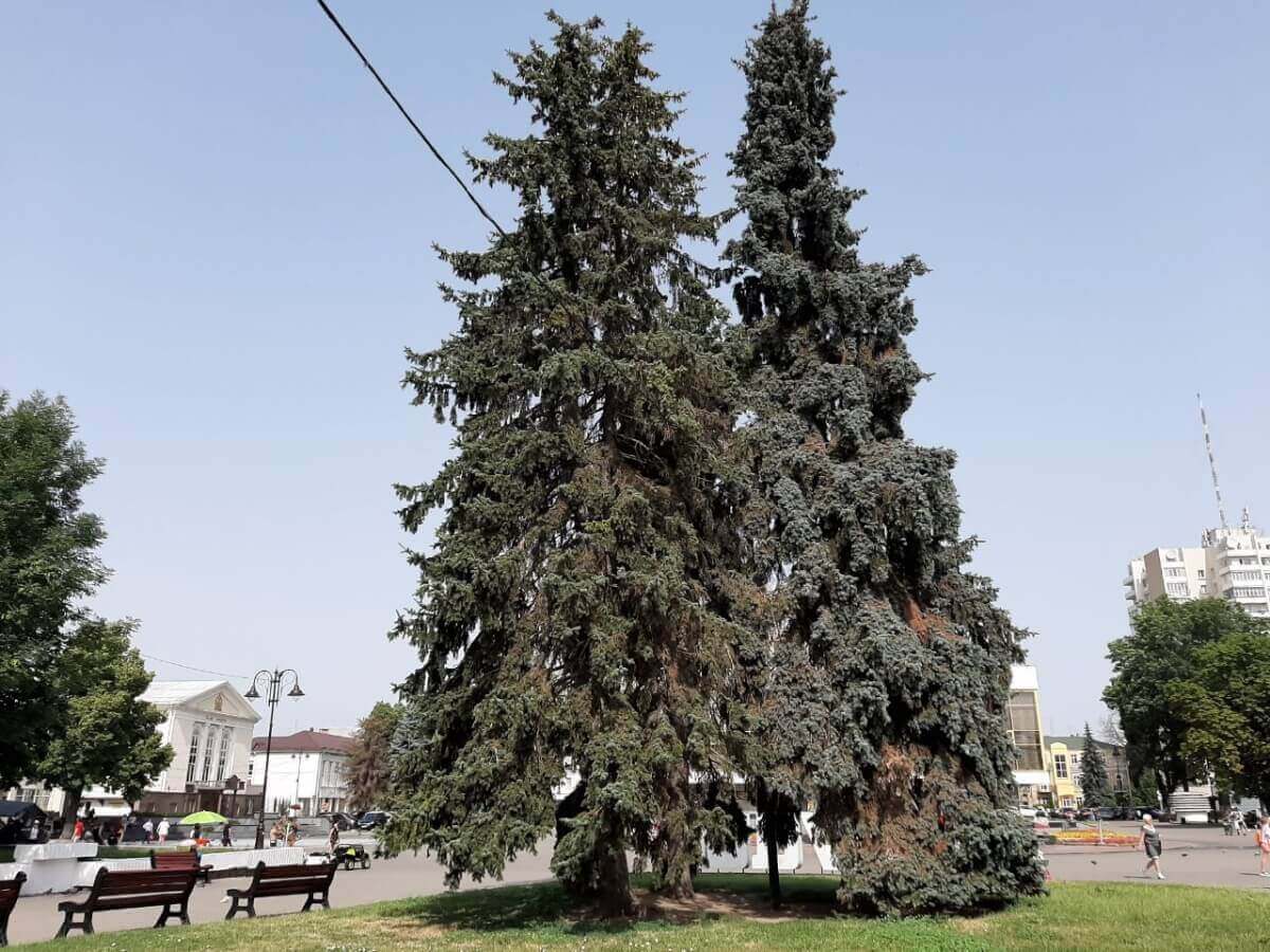 Ялинки на Театральному майдані, які останніми роками виконували функцію новорічних, поступово всихають.