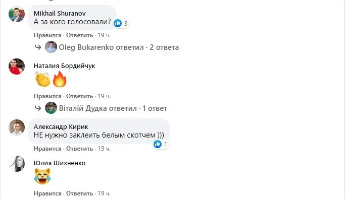 Відзначимо, що користувачі соціальної мережі з гумором поставилися до такого напису на автомобілі. «+10 до захисту», «удачі», «а за кого голосували?», «Їм треба було українською мовою написати».