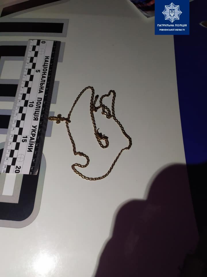 Патрульні підбігли до жінки аби запитати чи потрібна їй допомога. Вона повідомила, що коли поверталася додому, їй стало погано і вона впала. До неї підійшло двоє чоловіків, які запропонували допомогу, а коли 65-річна жінка підвелась, вони зірвали з неї золотий ланцюжок та втекли.