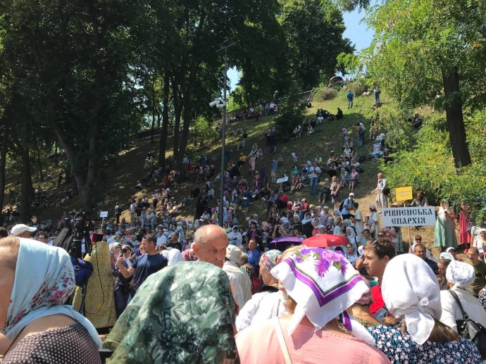 Також нагадаємо, що у вівторок, 27 липня, кілька тисяч вірян Української православної церкви Московського патріархату зібрались на Володимирській гірці в Києві, щоб відствяткувати 1033 річницю хрещення Русі. Рівно о 13 годині біля пам’ятника почався молебень. Люди тримали в руках ікони та таблички з назвами своїх єпархій – Полтавська, Кіровоградська, Рівненська, Сумська, Херсонська тощо.