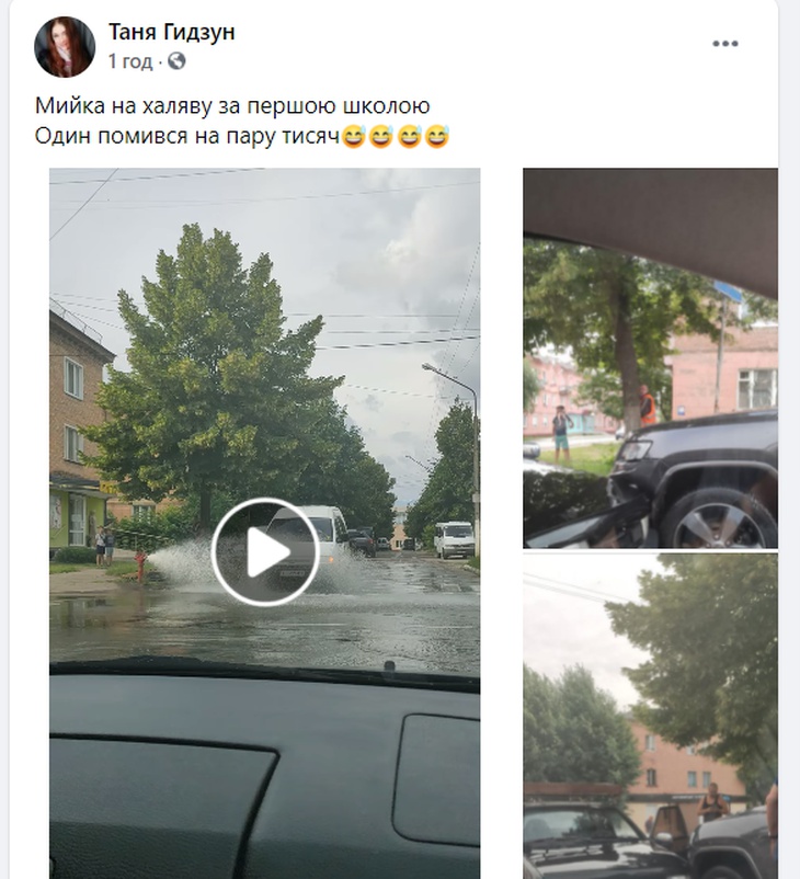 Також очевидці додають, що Лада повертала з головної, вулиці Грушевського, і за потоком води було погано видно Джип.