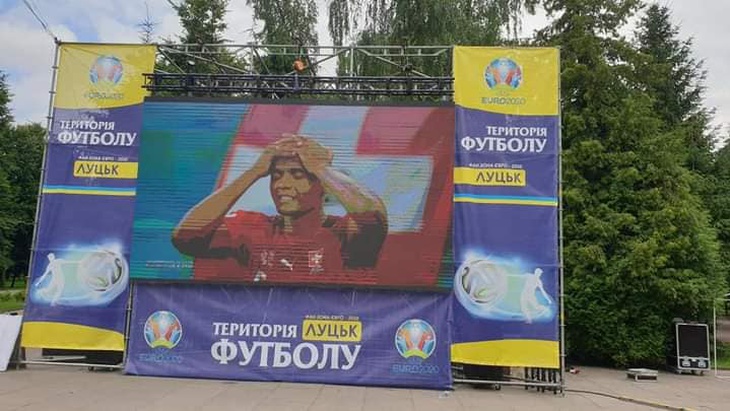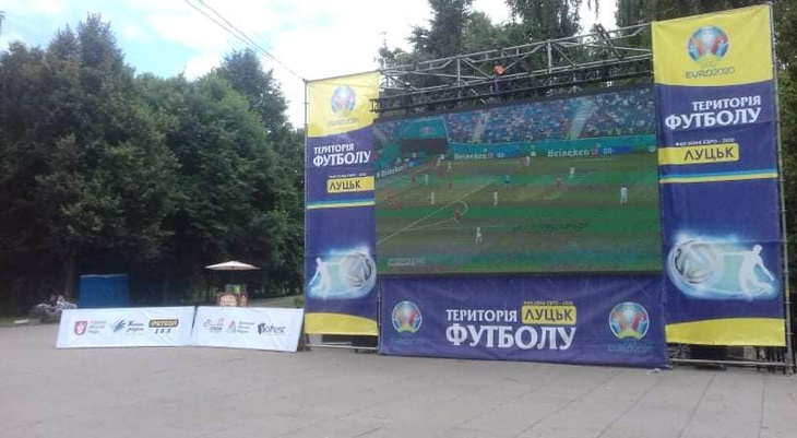 В Центральному парку культури і відпочинку ім. Лесі Українки в Луцьку влаштують спільний перегляд матчу Україна-Англія. Там встановили екран для трансляції.