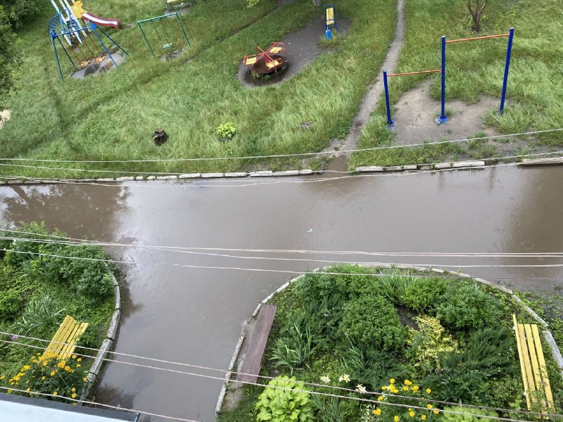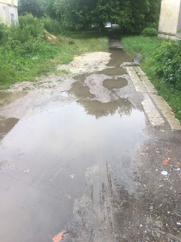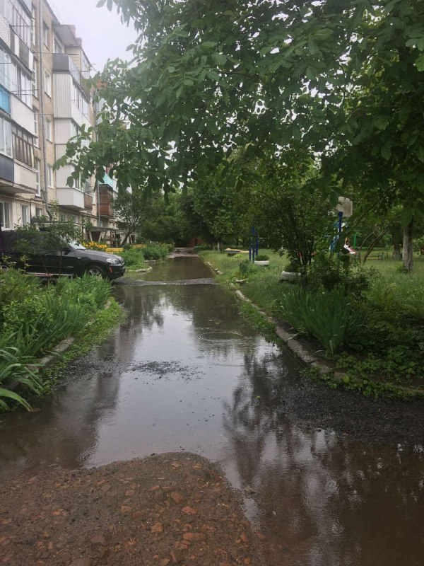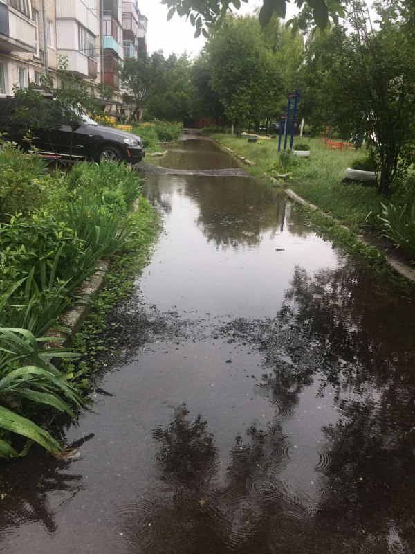 Мешканці будинку поділилися з ГІТом світлинами і відео, з яких видно, на що перетворюється їхній двір після дощу.