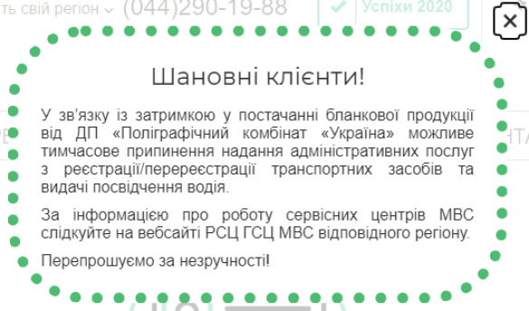 У зв’язку із затримкою у постачанні бланкової продукції від ДП «Поліграфічний комбінат «Україна» можливе тимчасове припинення надання адміністративних послуг з реєстрації/перереєстрації транспортних засобів та видачі посвідчення водія, – йдеться у повідомленні.