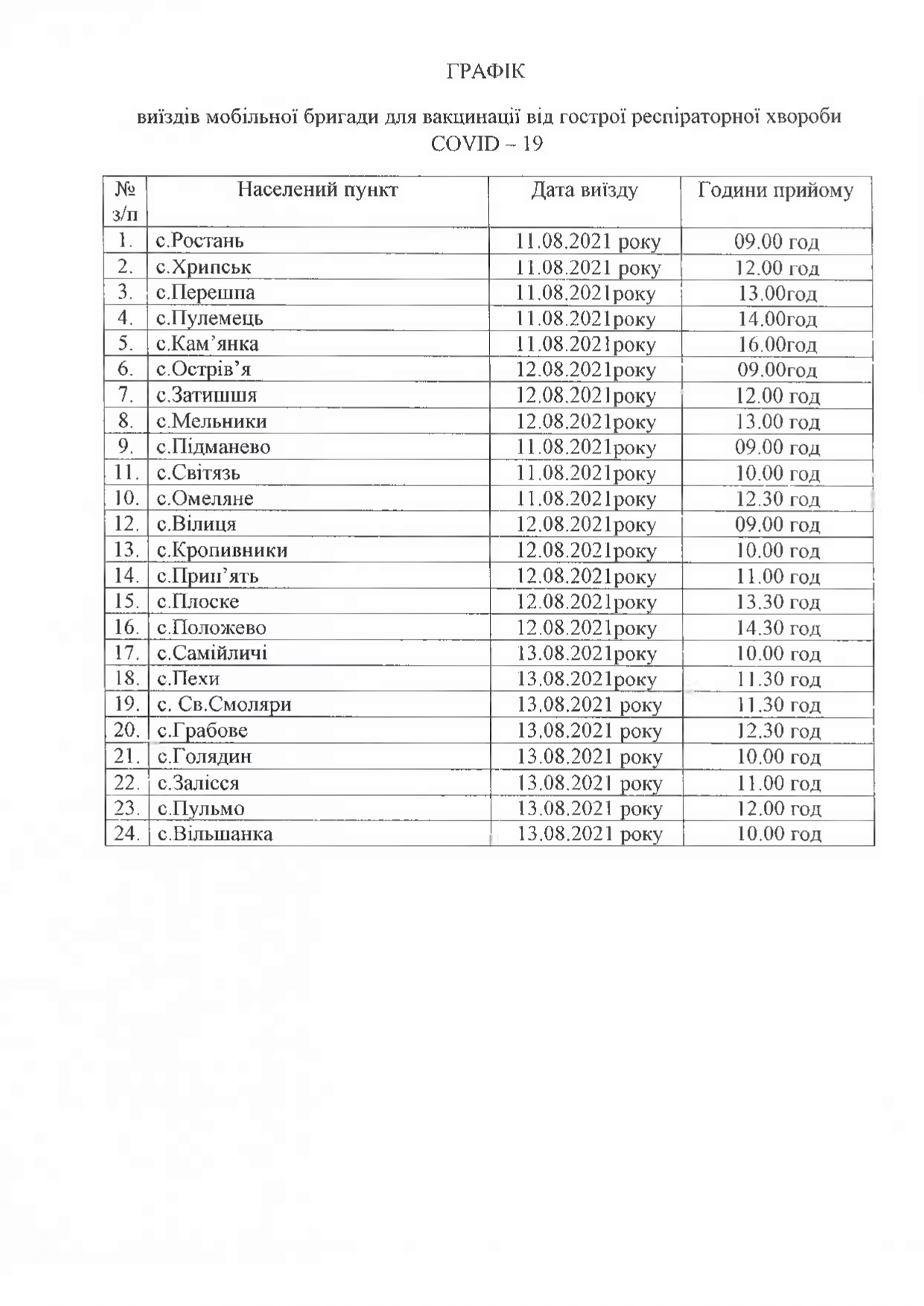 Тому просять мешканців громади прийти в визначений день і час у місцевий ФАП чи амбулаторію та безоплатно отримати одну з сертифікованих вакцин.