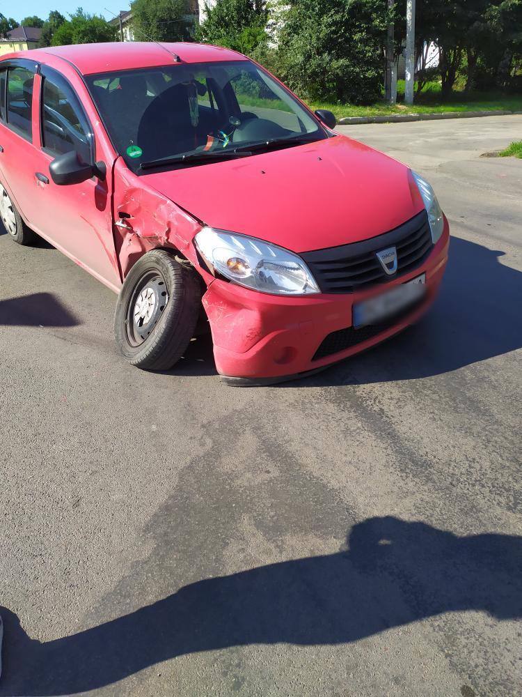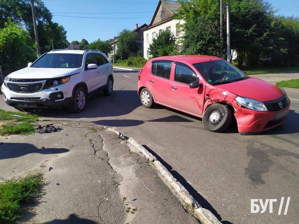 Зіткнулися автомобілі Kia та Dacia. Як відому, водій Dacia їхав вулицею Кобзаря від пам’ятника воїнам. Він не зупинився на знак «STOP» та не надав переваги в русі автомобілю Kia, який рухався головною зі сторони податкової.