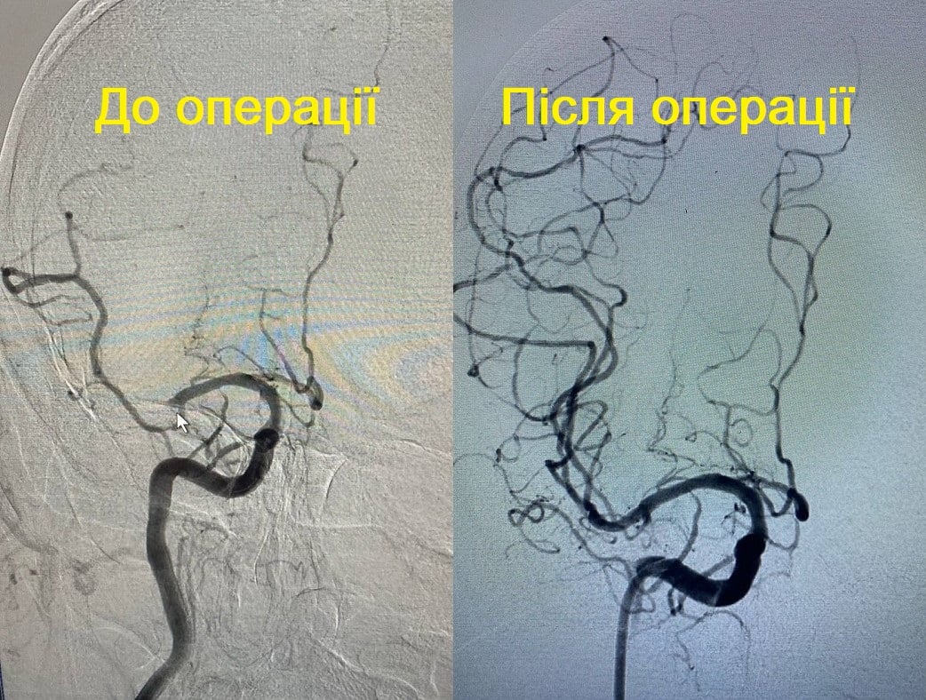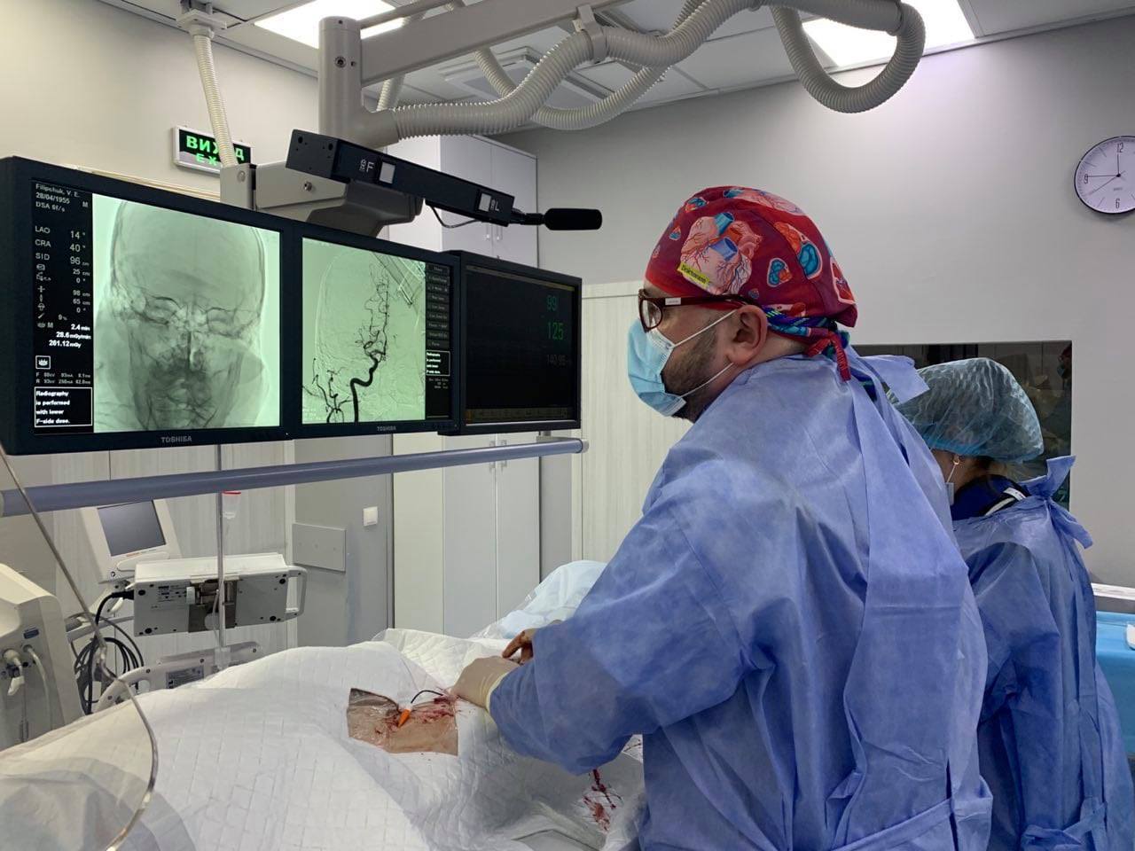 Через прокол в стегновій артерії команді лікарів у складі судинного хірурга Олександра Голуба та нейрохірурга Юрія Новака успішно вдалося видалити тромб із судин мозку.