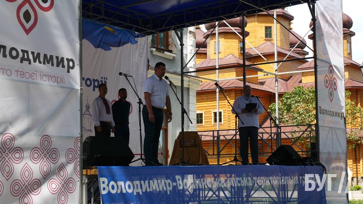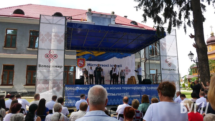 Першим перед пристуніми виступив міський голова Ігор Пальонка, який вручив також грошові нагороди почесним мешканцям Володимира.