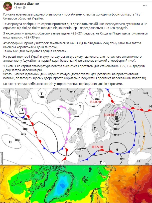 Про це на своїй сторінці у фейсбуці написала синоптикиня Наталка Діденко.