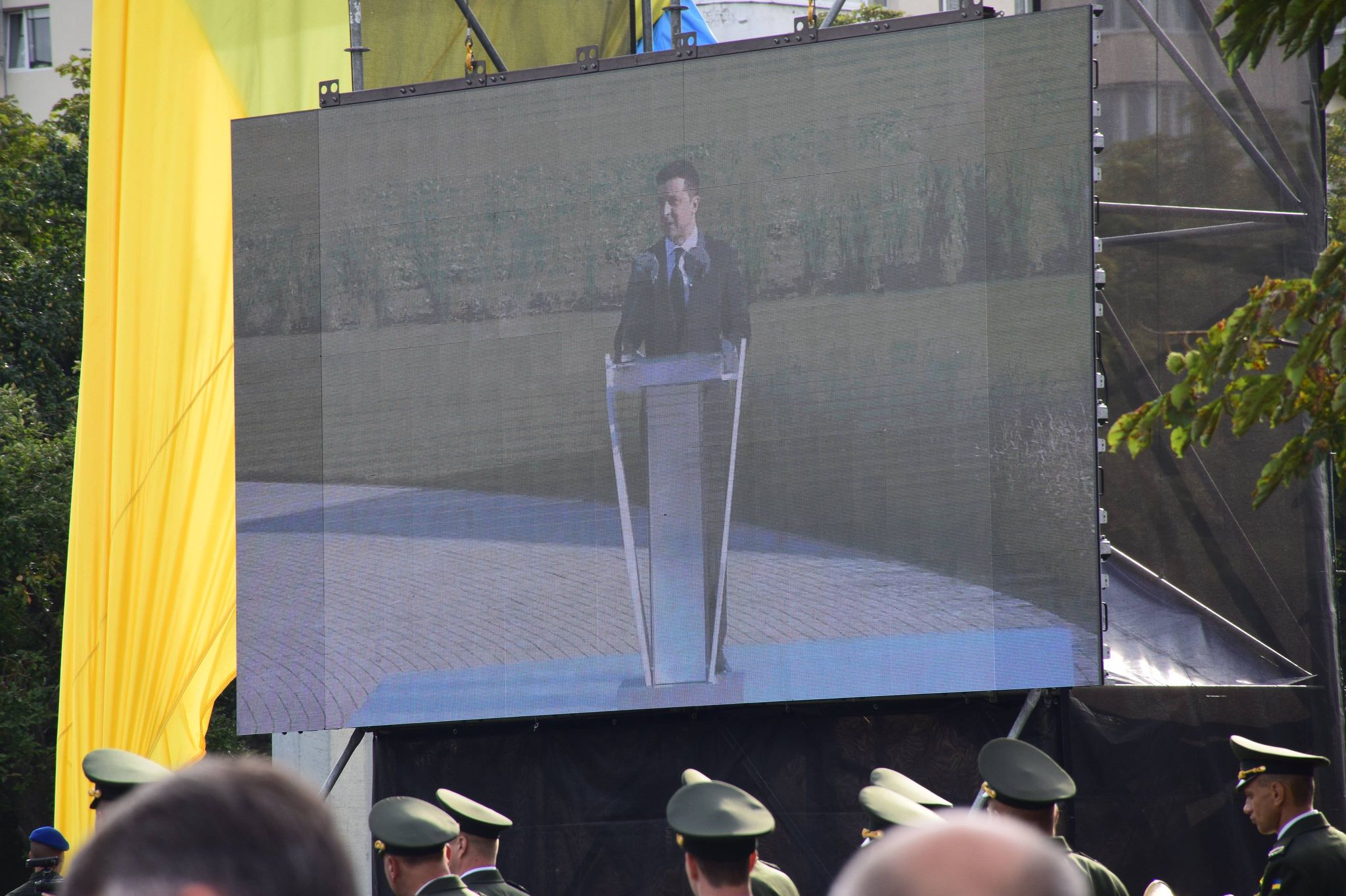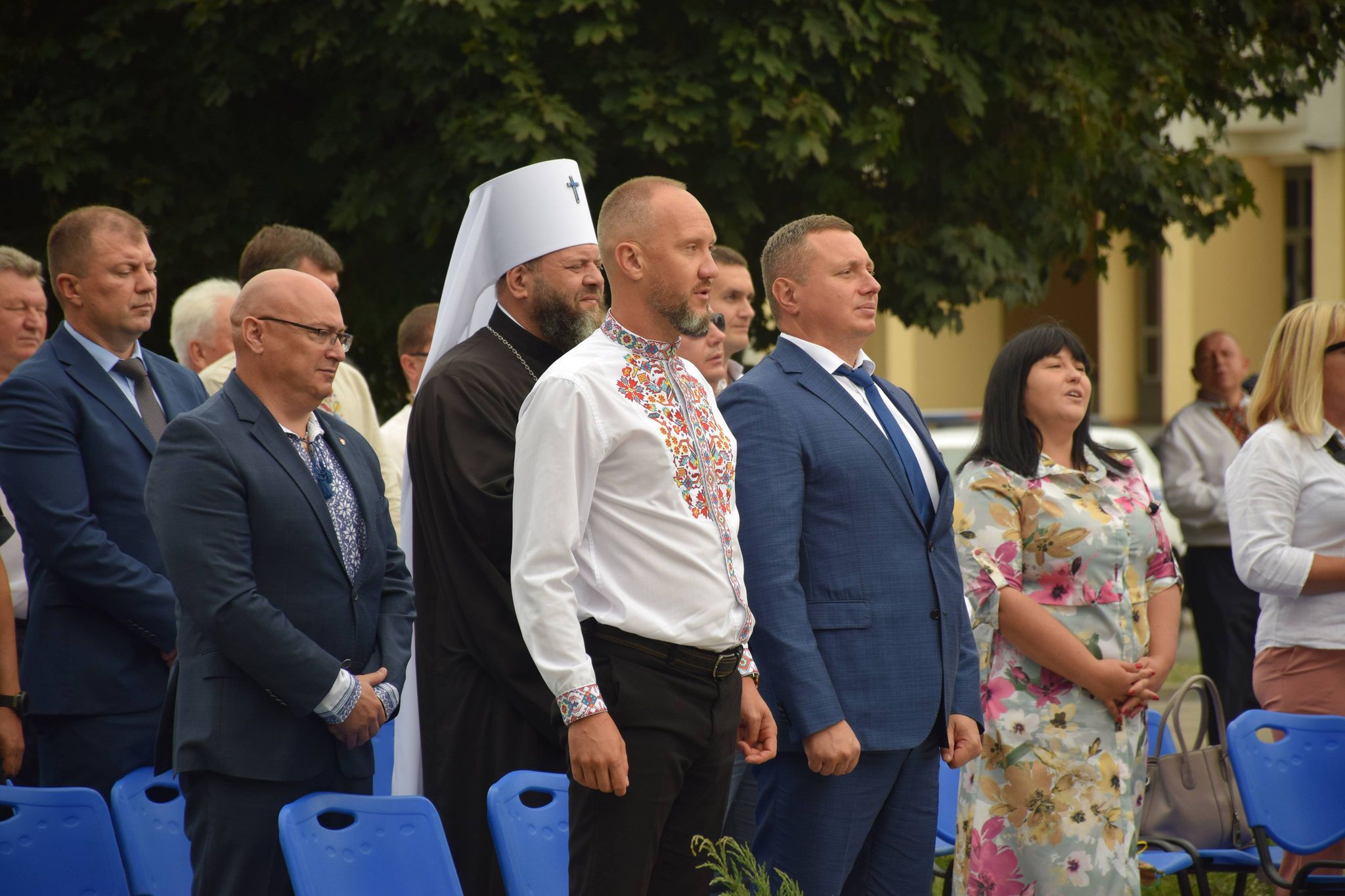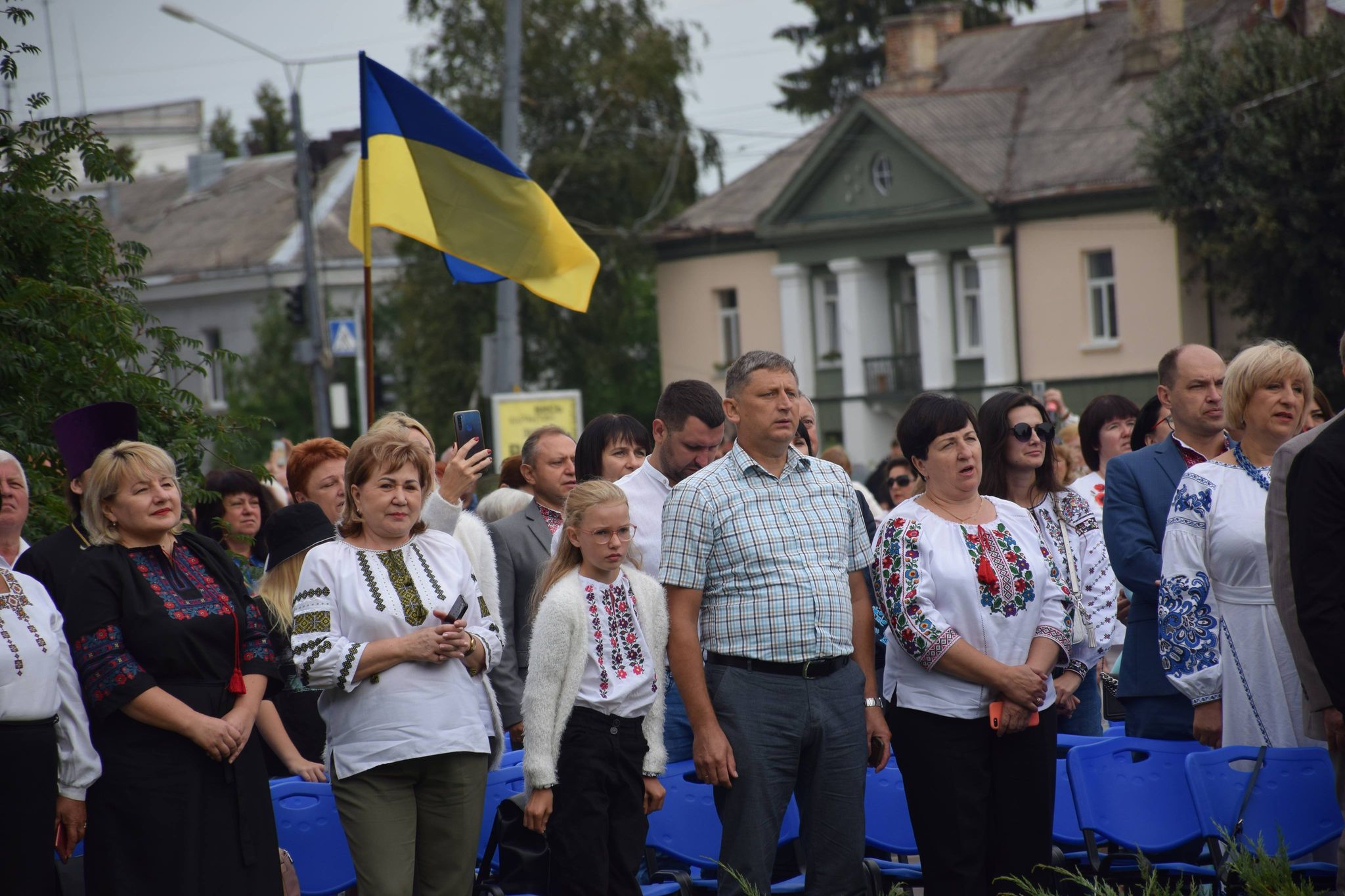 Учасники дійства переглянули на екрані трансляцію церемонії підняття Державного прапора України за участю Президента Володимира Зеленського в географічному центрі нашої країни – селі Мар’янівка Черкаської області.