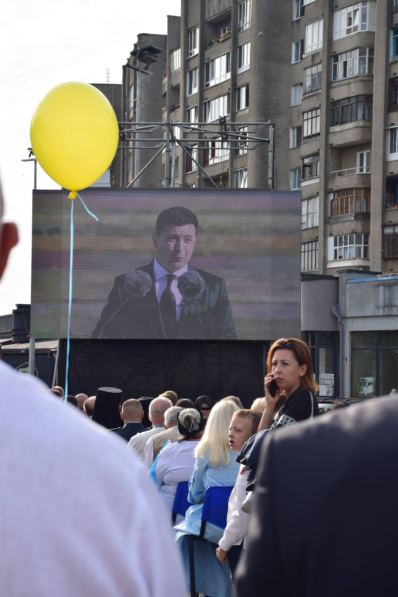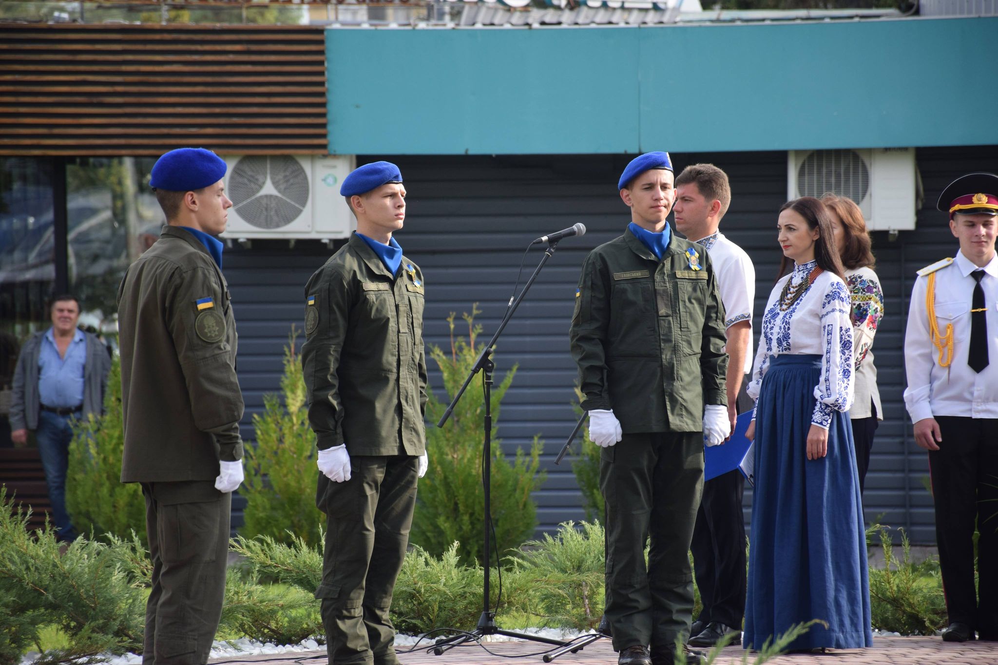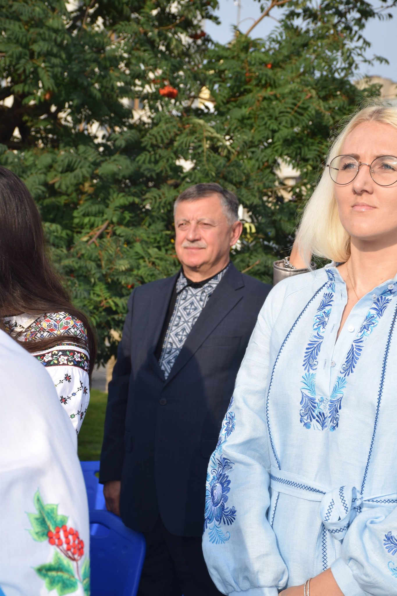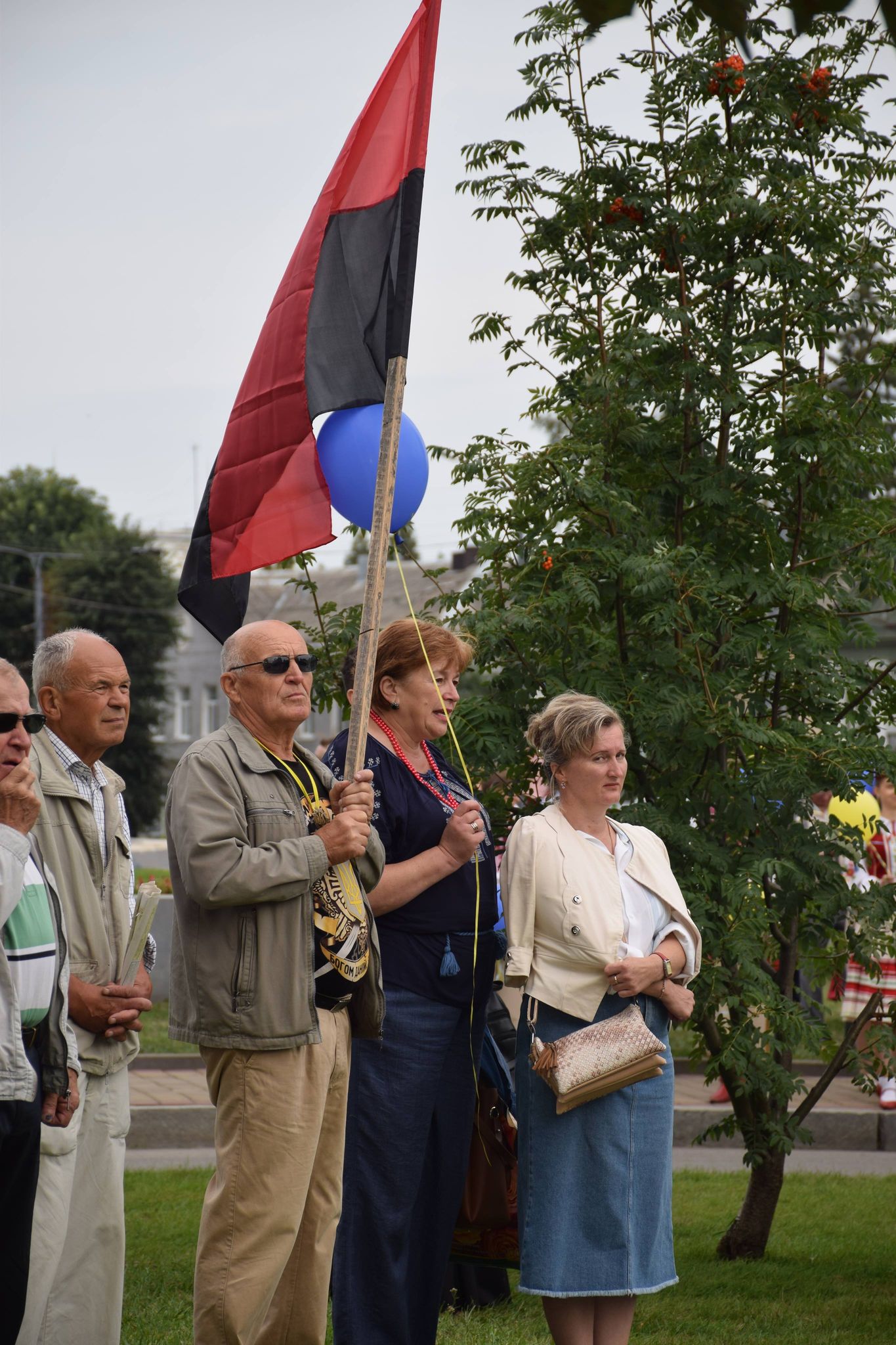 Учасники дійства переглянули на екрані трансляцію церемонії підняття Державного прапора України за участю Президента Володимира Зеленського в географічному центрі нашої країни – селі Мар’янівка Черкаської області.