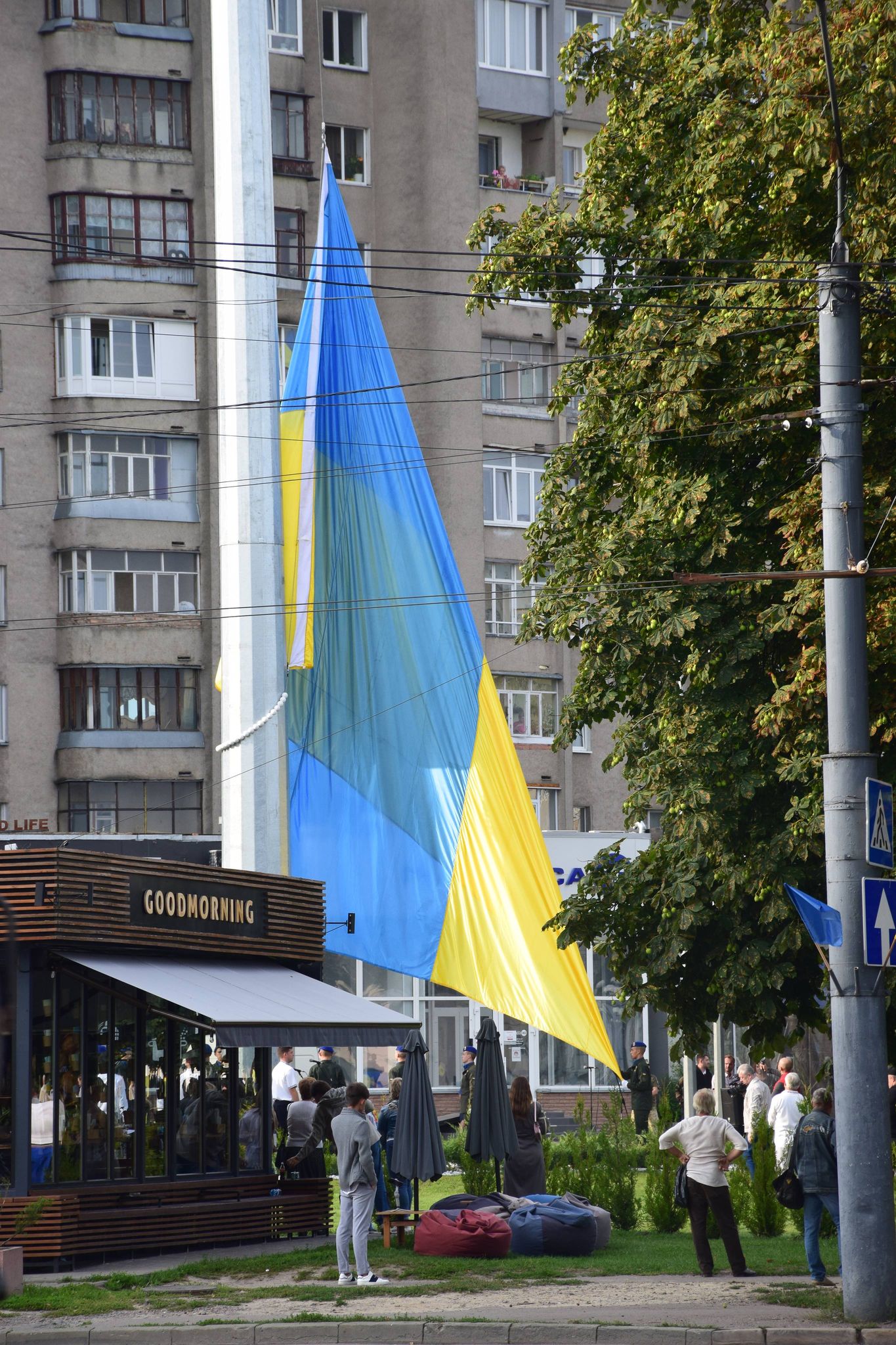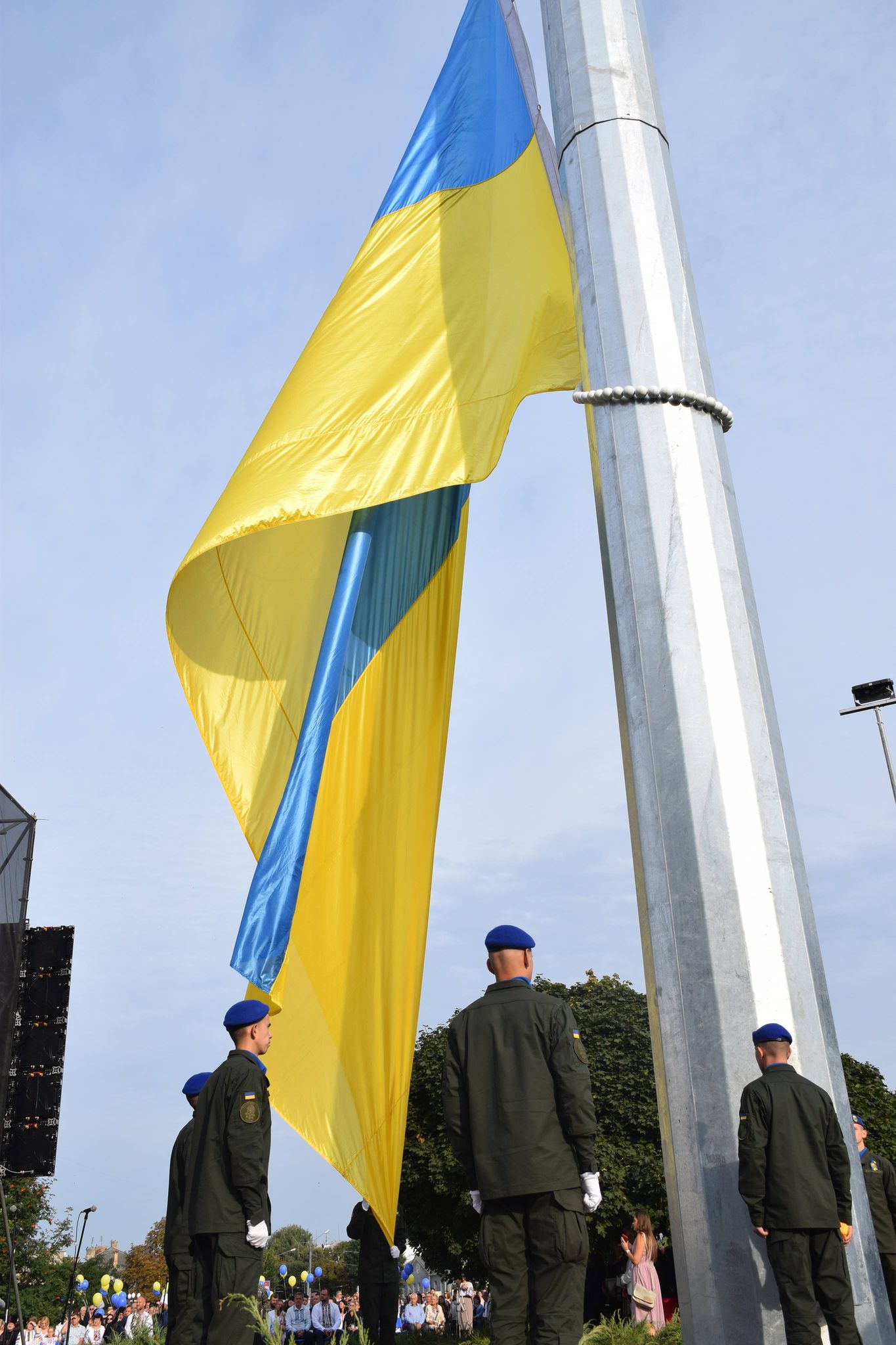Найбільший прапор України на Волині площею 8×12 метрів підняли військовослужбовці Національної гвардії. Від сьогодні він майорить на щоглі висотою 50 метрів, спеціально збудованої до 30-річчя Незалежності України на Київському майдані в Луцьку.