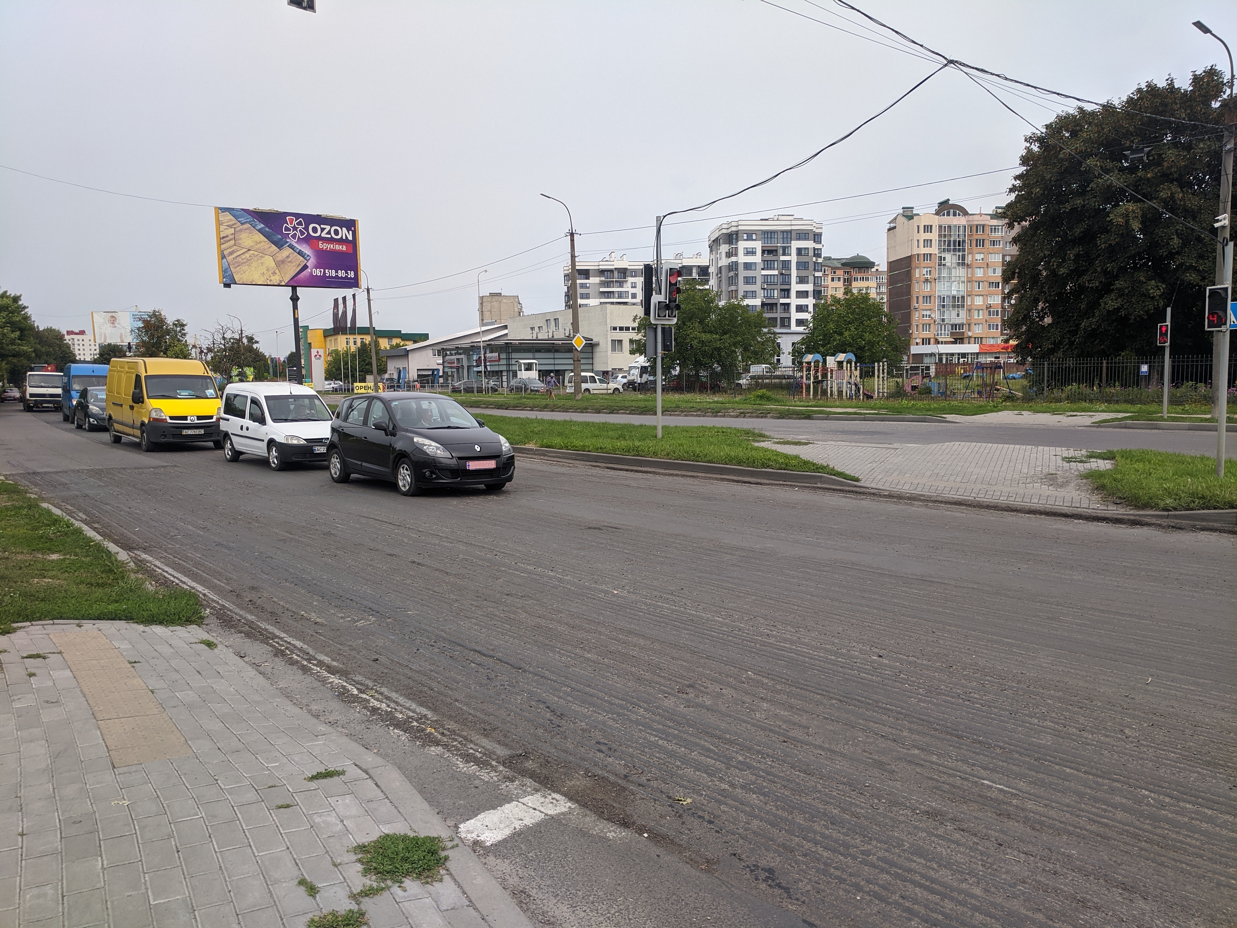 За 1 мільйон 444 тисячі 852,40 гривні тут мають провести холодне фрезерування асфальтобетонного покриття на глибину 8 см (що вже зроблено), розлити бітумну емульсію, улаштувати вирiвнювальний шар і покриття з гарячої щільної дрібнозернистої асфальтобетонної сумiшi товщиною 4 см, на площі до 5 квадратних метрів зробити ямковий ремонт асфальтобетонного покриття дорiг товщиною 50 мм, перекласти горловини дощоприймальних колодязiв трирядовою кладкою.