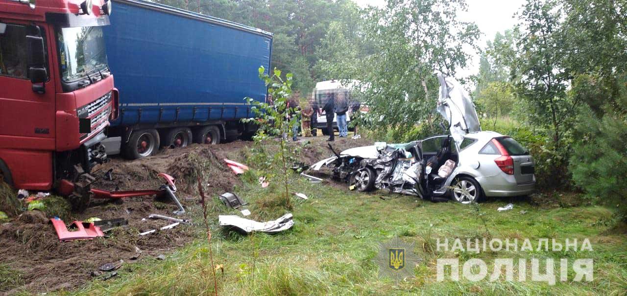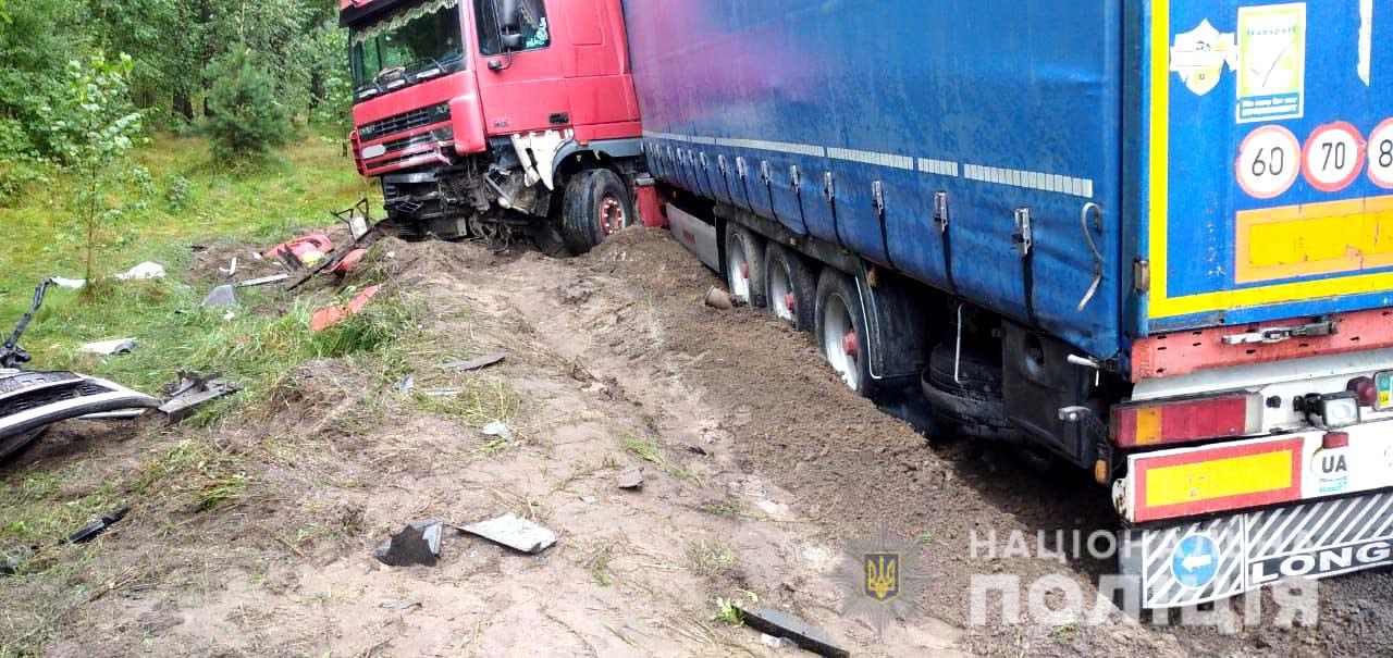 За попередніми даними, 56-річний водій вантажівки «DAF», житель міста Херсон, не впорався із керуванням, виїхав на смугу зустрічного руху, де допустив зіткнення із автомобілем «Kia Ceed». Від удару останній злетів у кювет, повідомляє поліція Рівненської області.