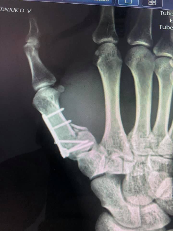Волинянину провели оперативне лікування: остеосинтез п’ясної кістки та фіксація титановою міні-пластиною.