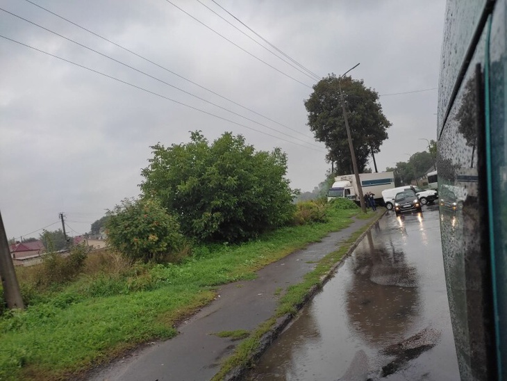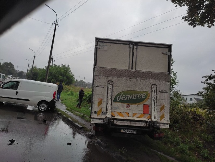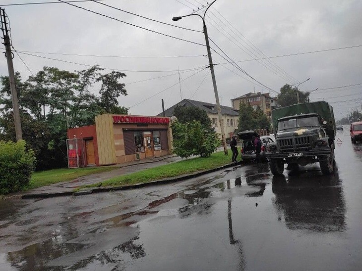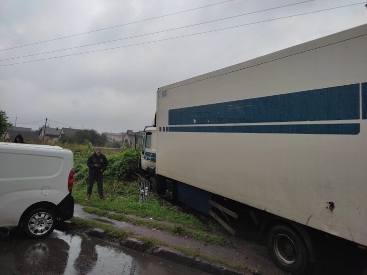На вулиці Карпенка-Карого зіткнулися фура і легковитй автомобіль. Вантажівка вилетіла на узбіччя і зачепила легковик.
