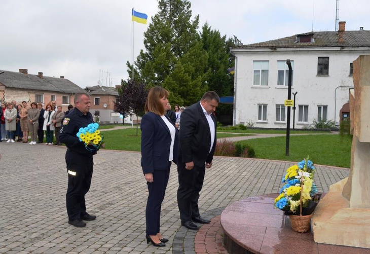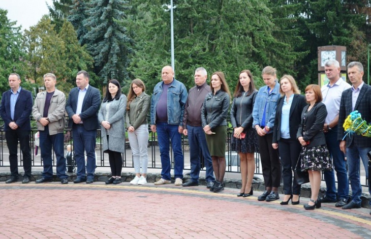 Хвилиною мовчання присутні вшанували загиблих. Міський голова Вячеслав Поліщук та керуюча справами виконавчого комітету Оксана Данилюк, а також представник поліції Ігор Ісаков поклали квіти до пам’ятного знаку «Борцям за волю та Незалежність України».