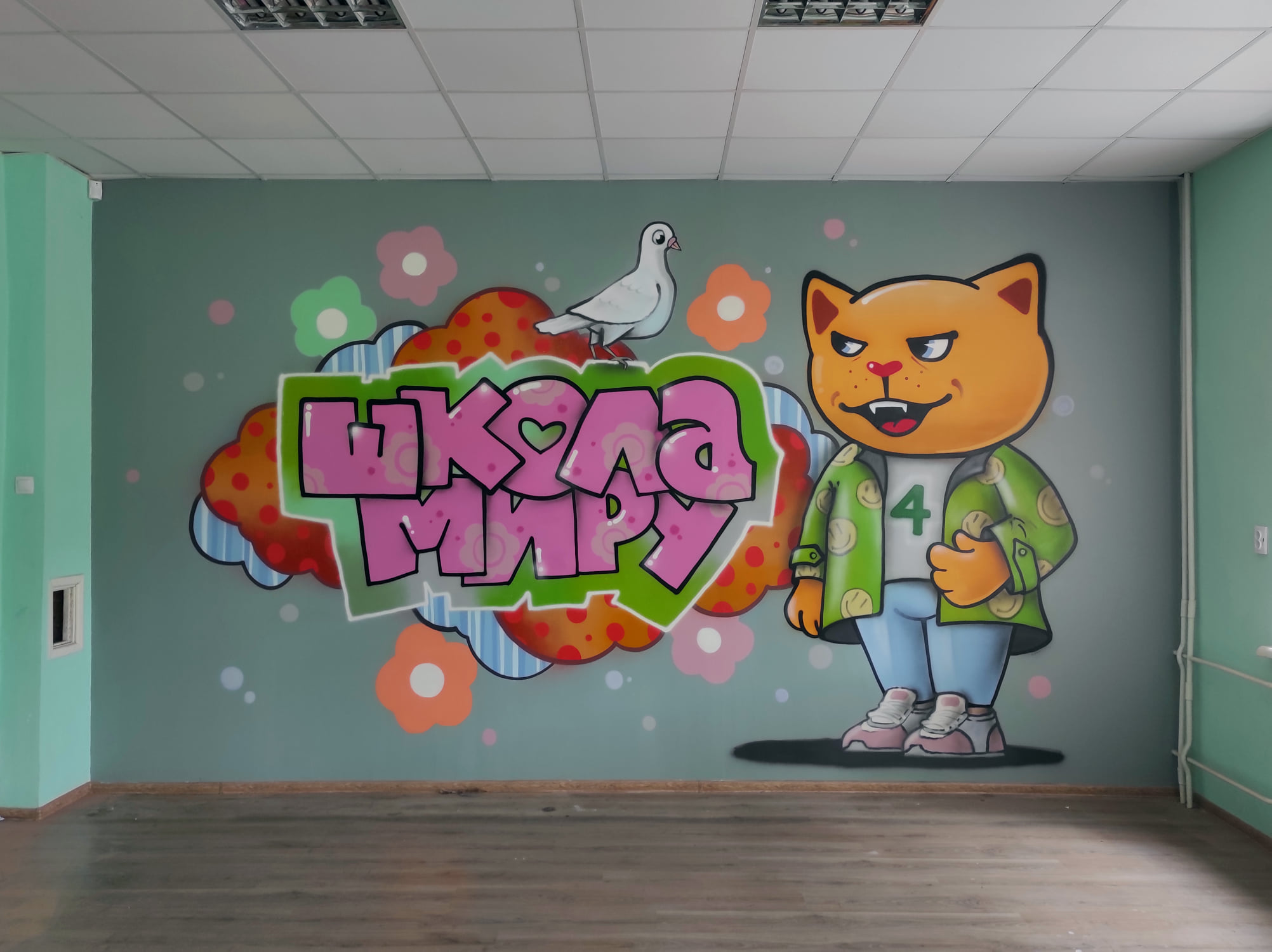 Вуличний художник Андрій Присяжнюк, що більш відомий за псевдонімом And, намалював свій улюблений образ кота на стіні одного з класів Луцької гімназії №4 імені Модеста Левицького, де він колись навчався.