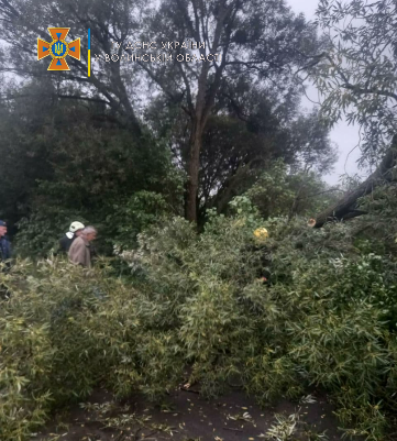 О 19:14 до служби порятунку надійшло повідомлення, що внаслідок дії поривчастого вітру на проїжджу частину дороги впало дерево та перекрило рух транспорту на вулиці Першотравневій у смт Турійськ.