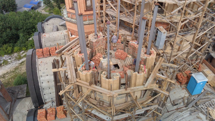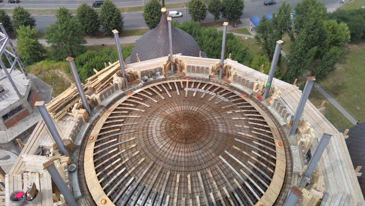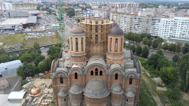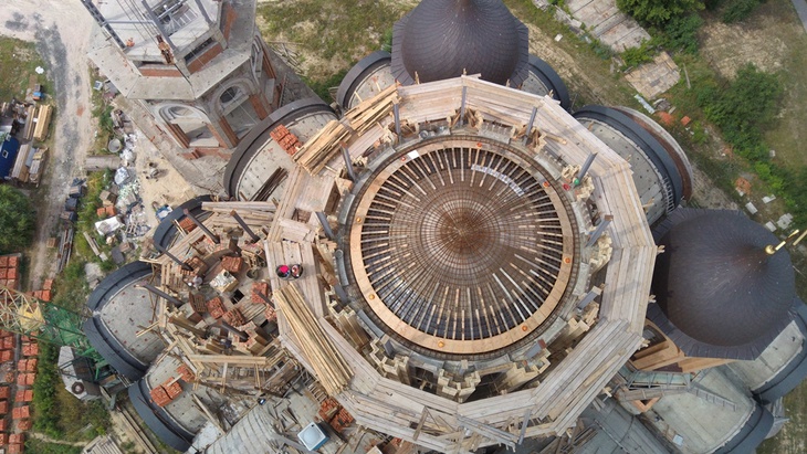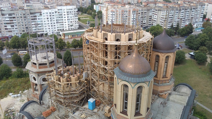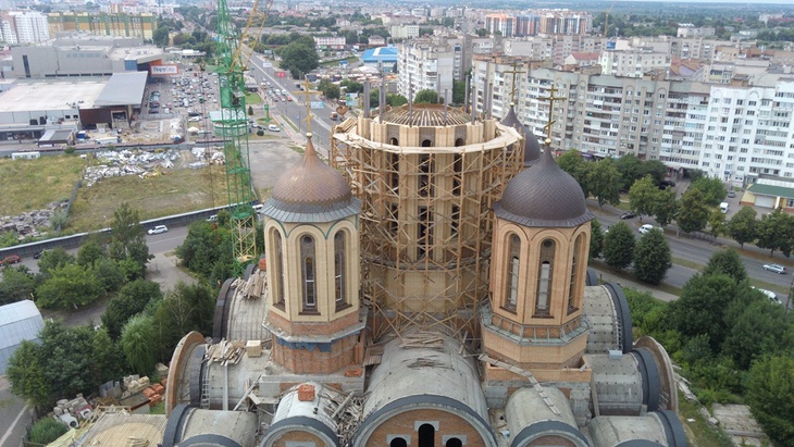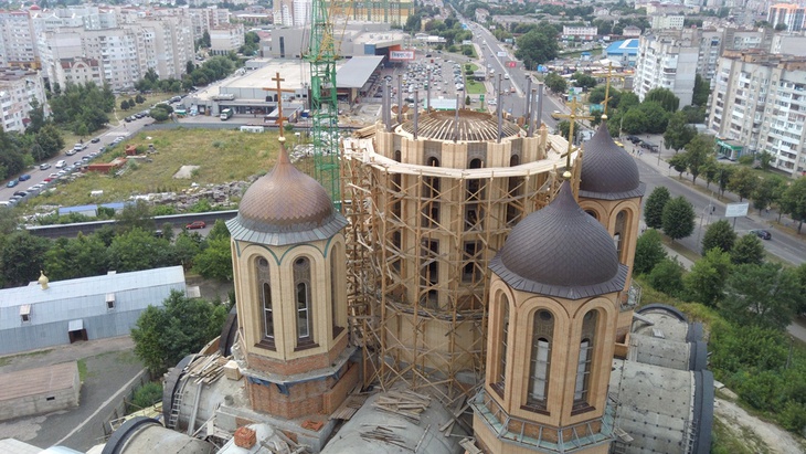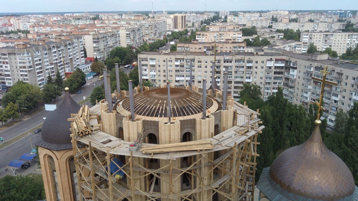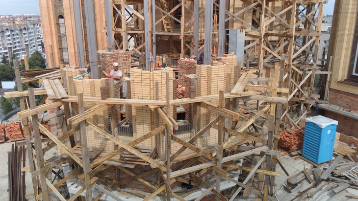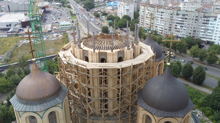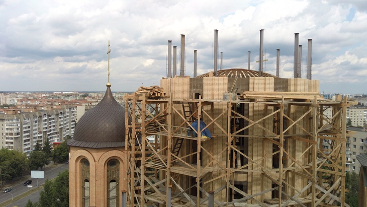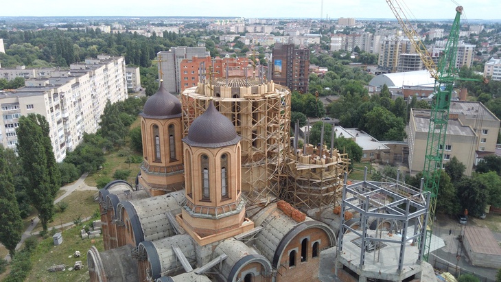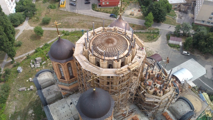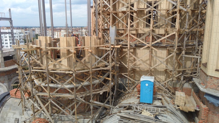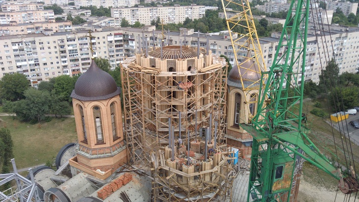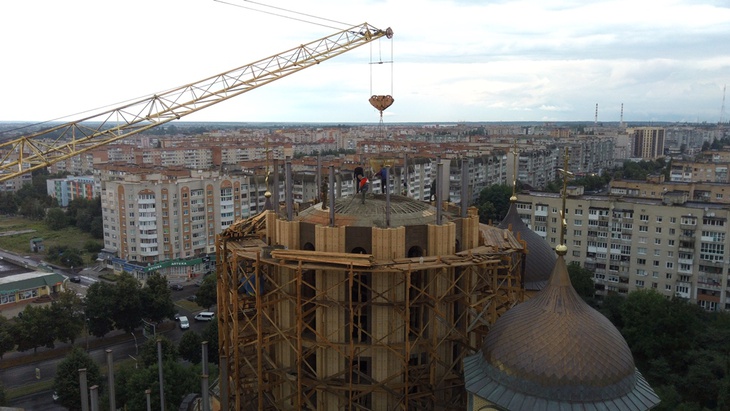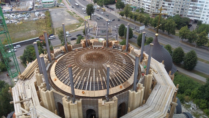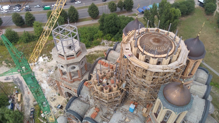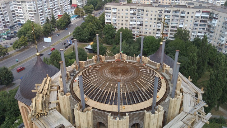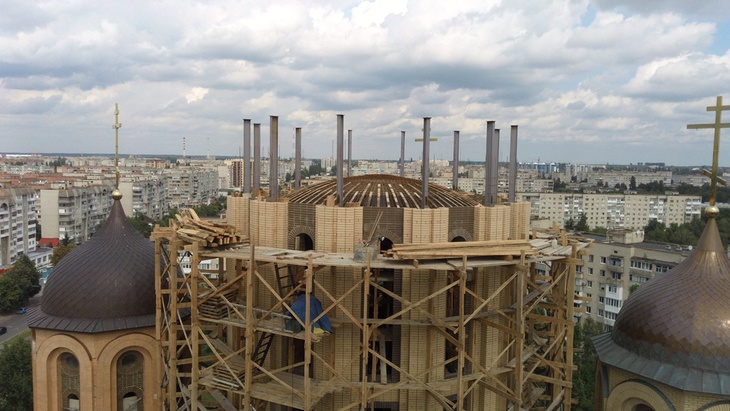 Зведення ж центрального купола на певний час призупиниться, аби залізобетонна конструкція головного зводу набрала міцності та не зазнала пошкоджень. Ще біля 4-х метрів центральний купол муруватимуть, а далі – металевий купол та 6-метровий хрест.