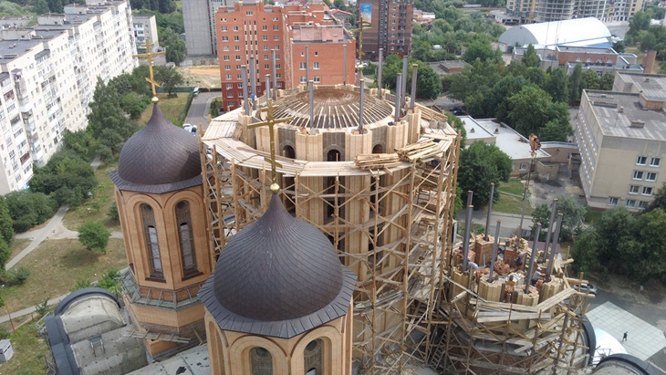 На будівництві луцького кафедрального собору Всіх Святих землі Волинської залили бетоном звід головного купола.