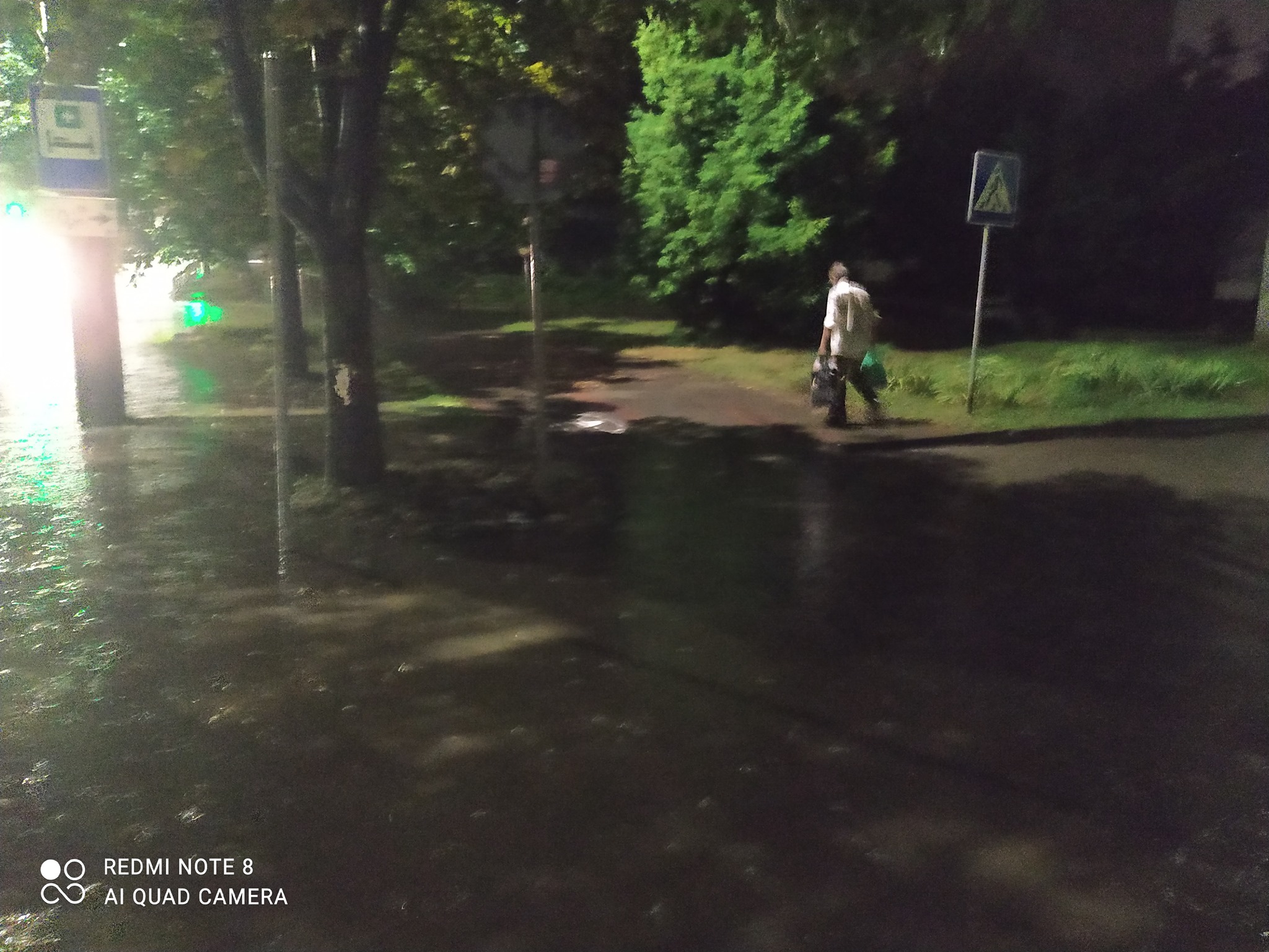 «Луцьк. На Відродження біля міської лікарні знову потоп. По коліна води навіть на тротуарі. Не їдуть ні машини, ні тролейбуси. Людей висадили біля ЗАГСу. Добирайтесь вплав. Але для міської влади це не проблема. Треба за 80 млн перерити проспект Волі, чи площу біля ЗАГСУ за 26 млн, або перенести постамент Бандері. А тут зробити елементарне водовідведення руки не доходять», – обурюється журналіст.