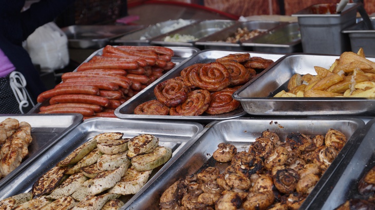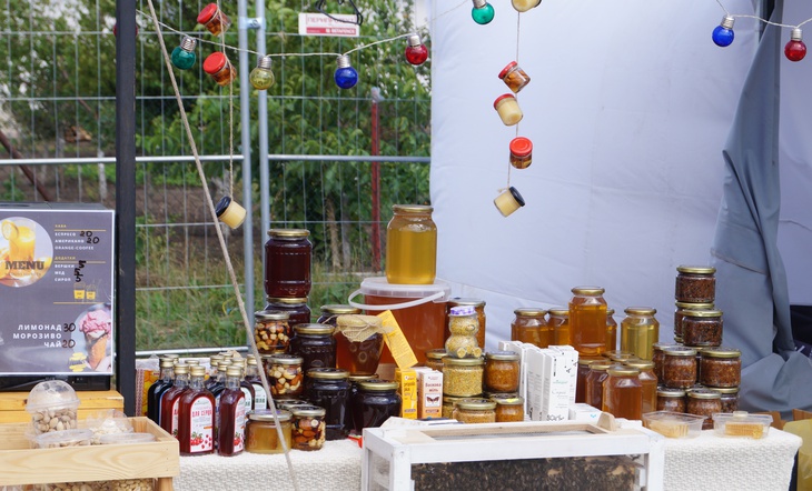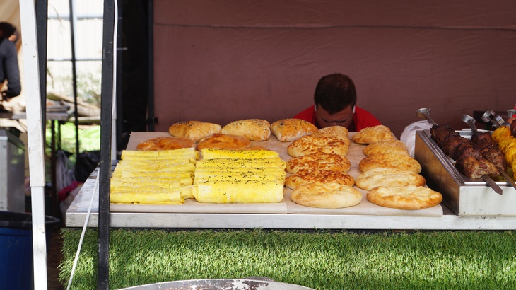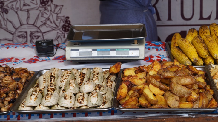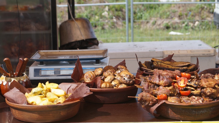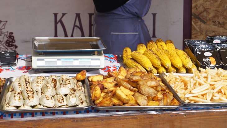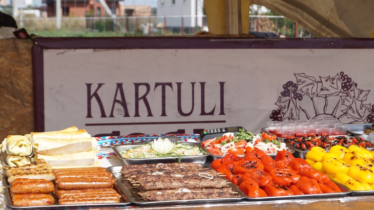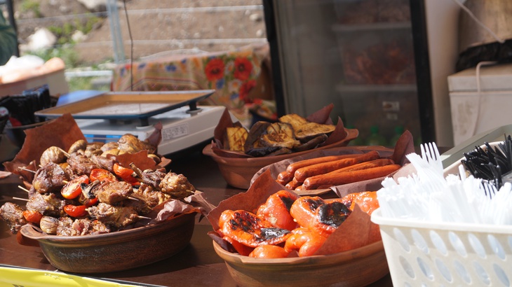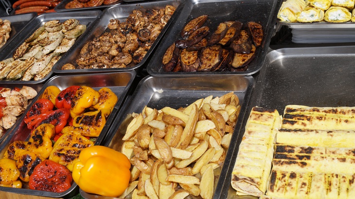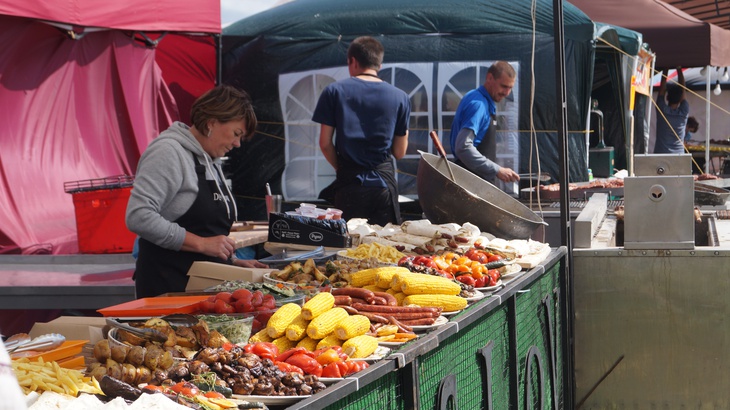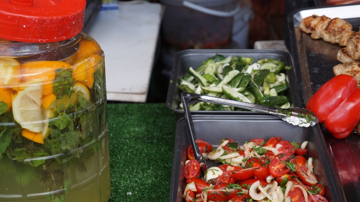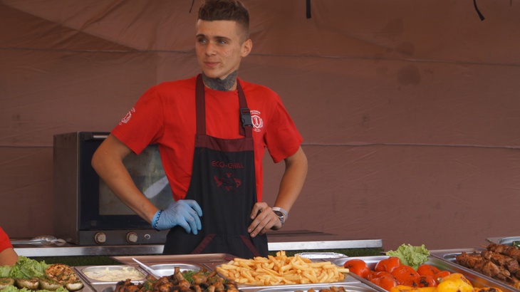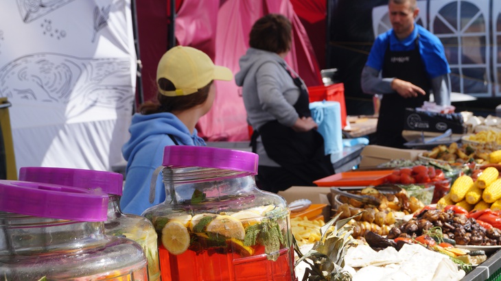 У зоні фудкорту можна поласувати різноманітними стравами. Зокрема, гостям пропонують: плов, картоплю, страви із грилю, бургери, піцу, бограч, роли, салати, кукурудзу тощо. Серед напоїв: лимонад, кава, чай, коктейлі, компоти, квас тощо.
