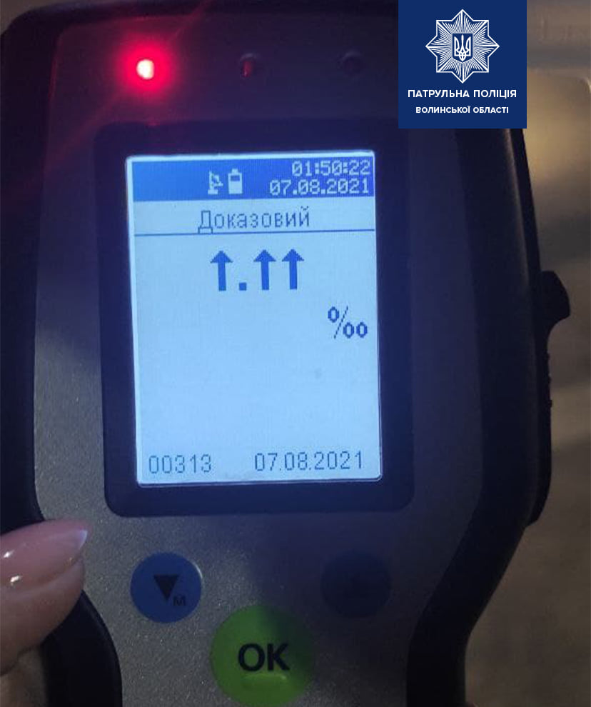 Поліцейські прибули на місце події та встановили всі обставини події. Окрім того, у керманича ГАЗ 24 виявили ознаки алкогольного сп’яніння. Останній пройшов огляд на визначення стану алкогольного сп’яніння у присутності свідків на місці події. Результат – позитивний (стрілки догори).