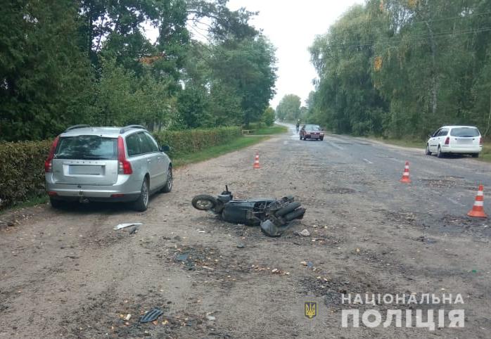 Цього ж дня, на автодорозі у селі Галузія на Маневиччині 59-річний житель селища на автомобілі Volvo зіткнувся із скутером Honda Dio.