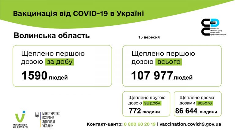 Станом на 16 вересня на Волині протягом попередньої доби зареєстровано 91 новий випадок коронавірусної хвороби COVID-19.