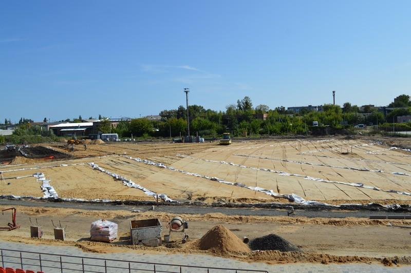 Усі роботи ведуться згідно з графіком. Наразі завершується монтаж системи автоматичного поливу футбольного поля. До кінця тижня мають встановити поребрик, який відділятиме від нього бігові доріжки.