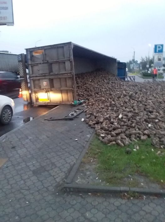 У Луцьку на Дубнівському перехресті у п’ятницю, 17 вересня, близько 6-ї години ранку перекинулася вантажівка з цукровими буряками.