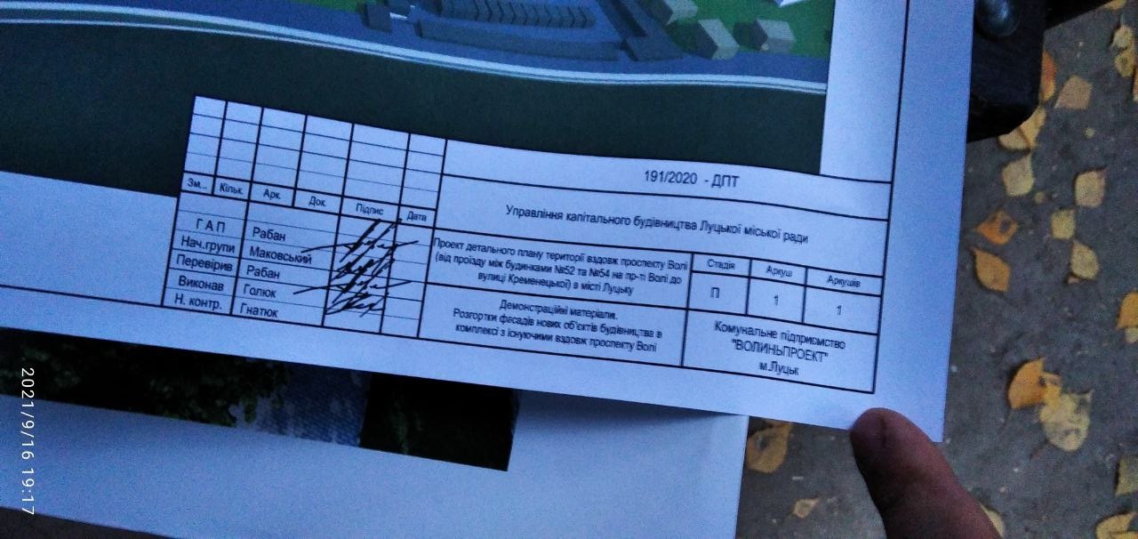 За його словами, йому належать чотири земельні ділянки між хрущовками, на яких підприємець, власне, й хоче розпочати будівництво. Двоповерхові торгівельно-офісні приміщення, за проєктом детального плану території, розробленим КП «Волиньпроєкт», мають розміщуватися поблизу пішохідної доріжки на парній стороні проспекту Волі на схилах між п’ятиповерхівками.