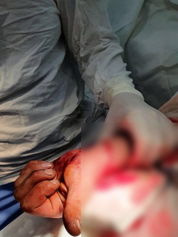 Встановлений діагноз: рвана рана передпліччя з пошкодженням магістральних судин та сухожилка довгого відвідного м'язу 1 пальця лівої кисті.