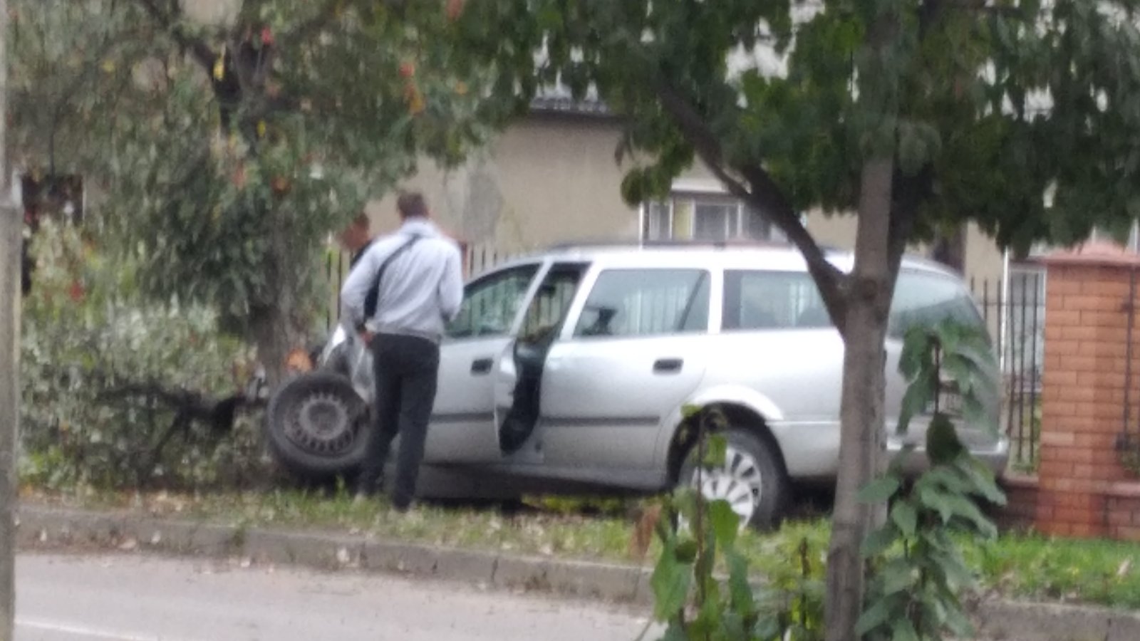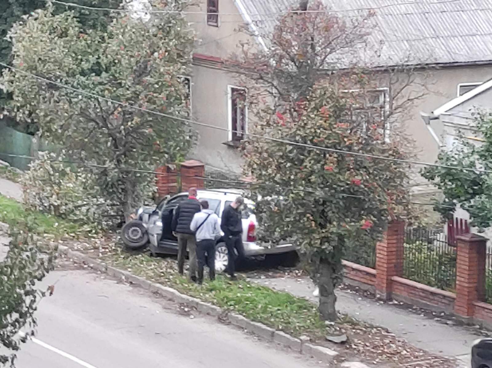 Як розповідають очевидці, у водія руки в крові, проте суттєвих травм він не зазнав. В авто потрощений моторний відсік і вивернуте ліве переднє колесо.
